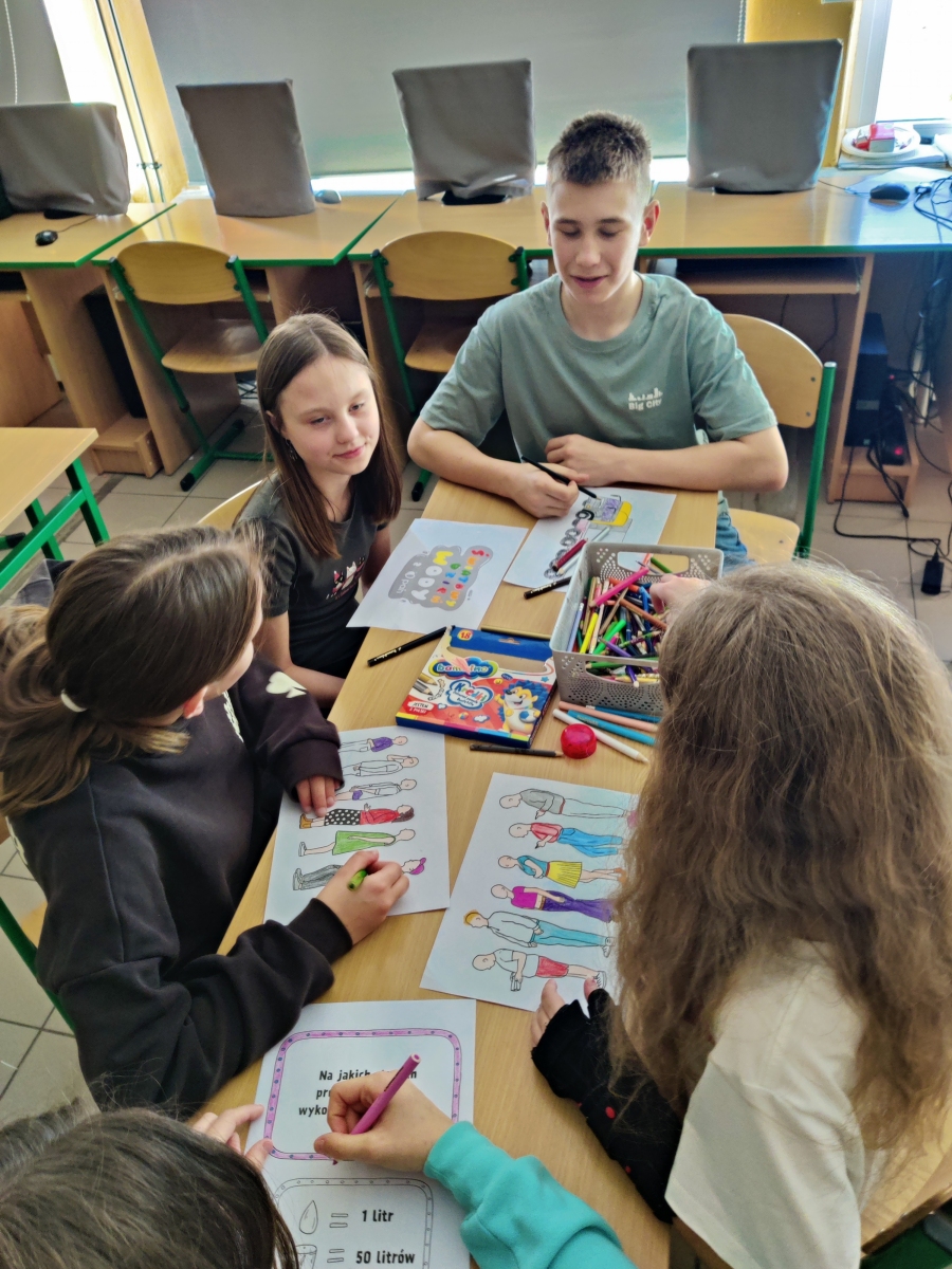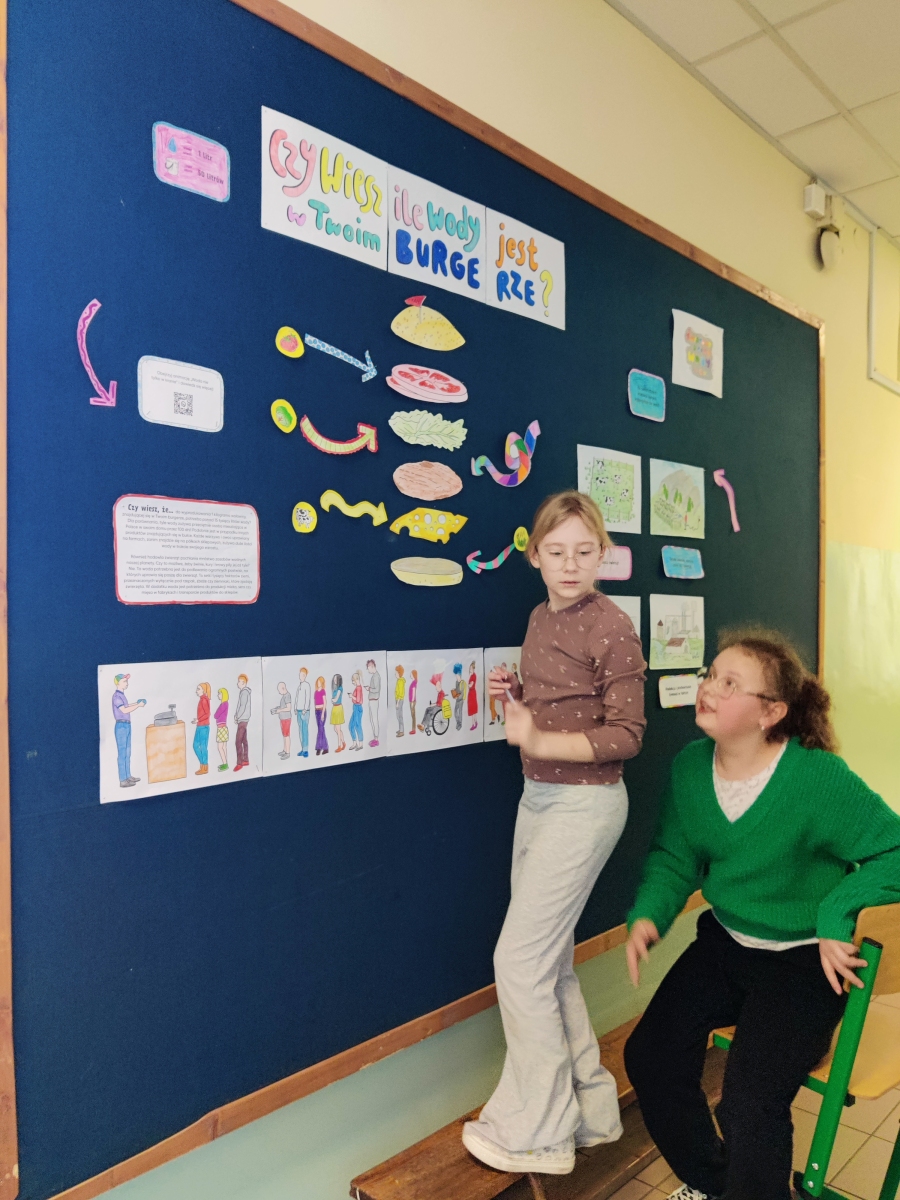 W naszej szkole obchodziliśmy ten dzień wraz z Polską Akcją Humanitarną. Podczas zajęć wykorzystaliśmy scenariusze dotyczące „wirtualnej wody”, przygotowane przez PAH. Uczniowie klas IV–VII stworzyli gazetkę szkolną, z której dowiedzieli się, ile wody pochłania produkcja burgera. Już wiemy, że „wirtualna woda” to woda zużyta do produkcji wszystkich rzeczy, takich jak jedzenie, ubrania itp.