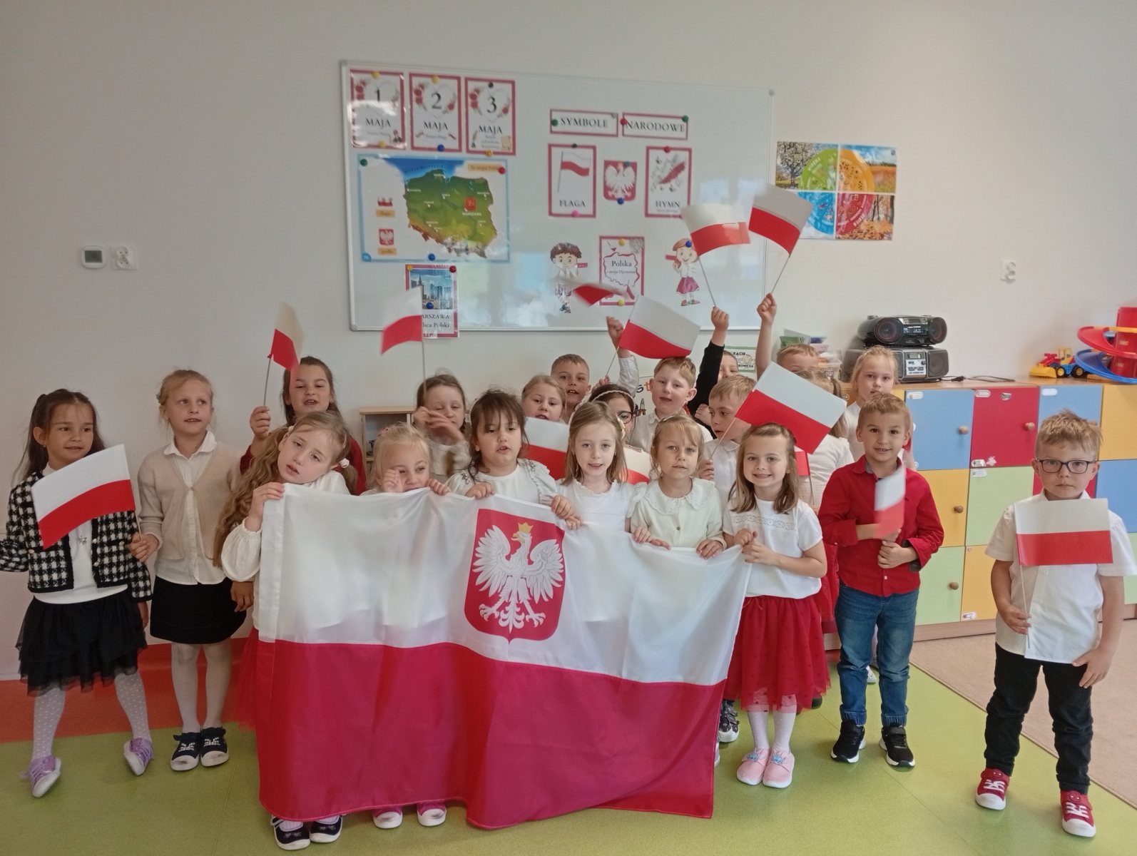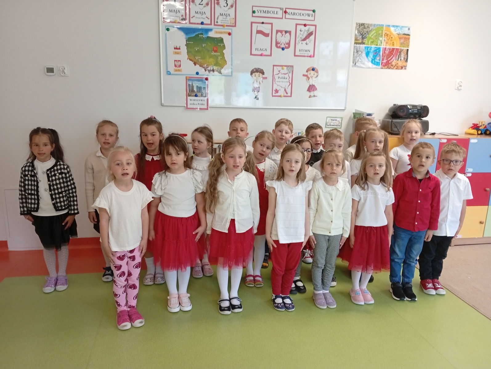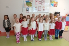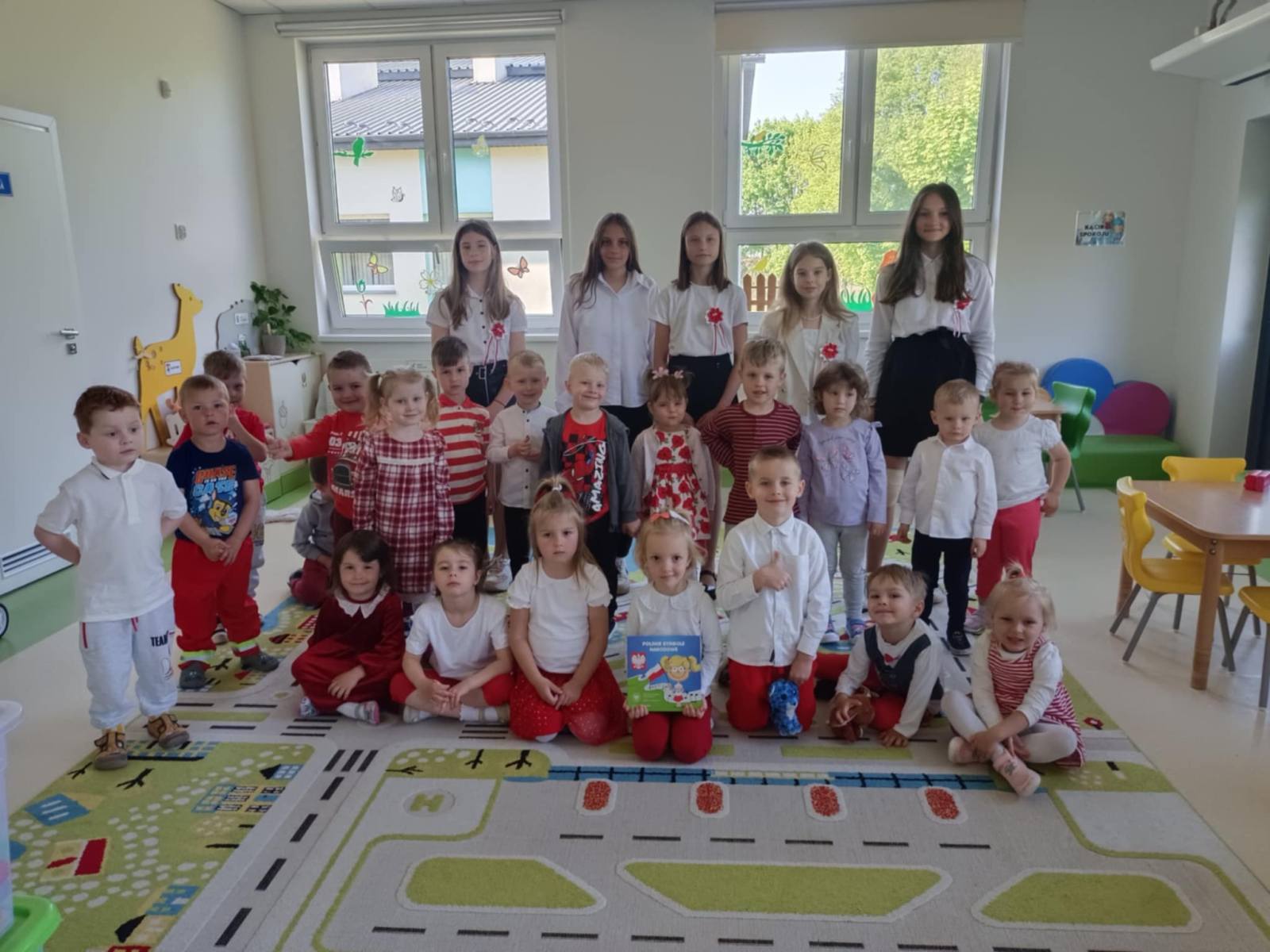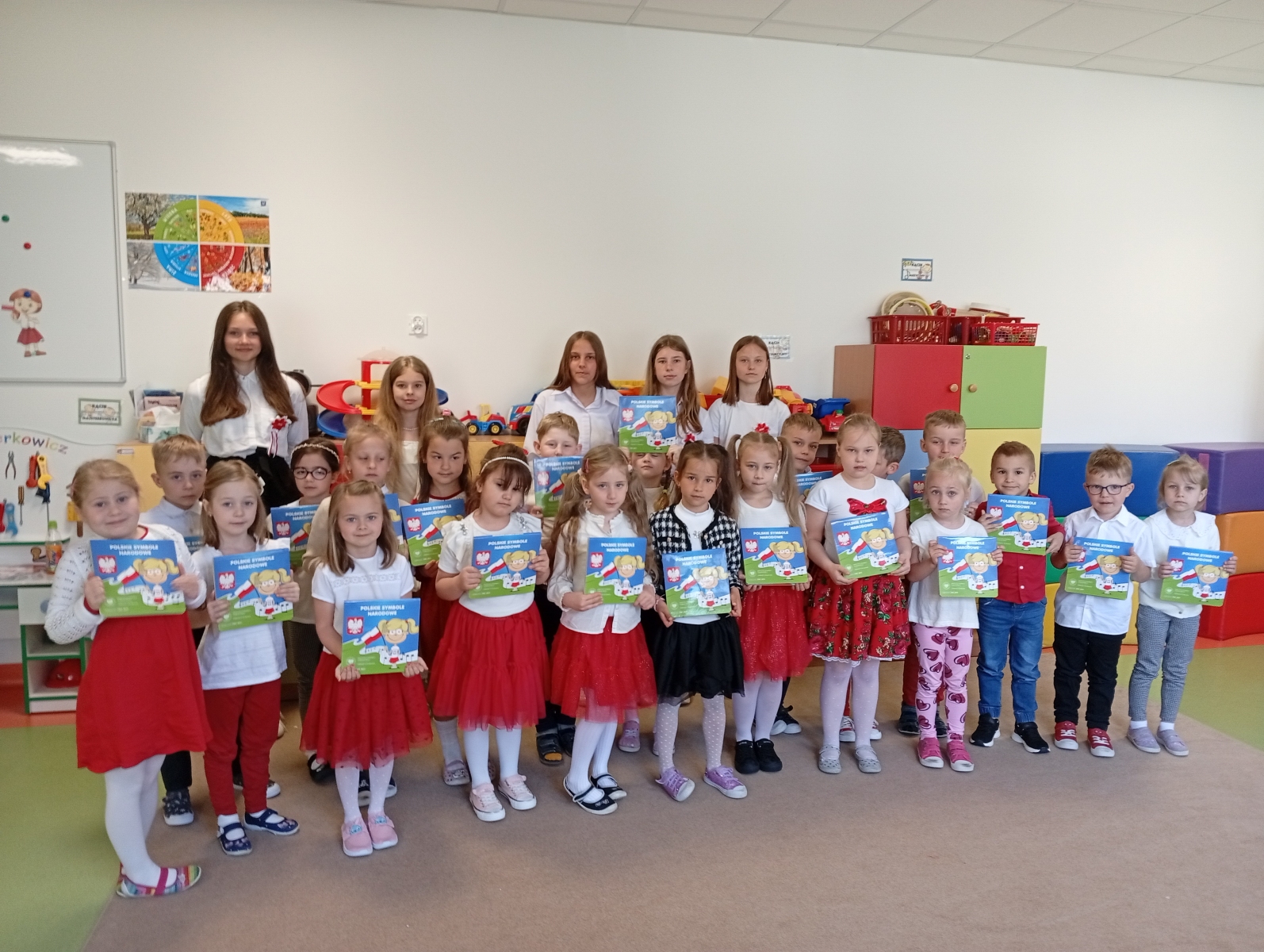 Z okazji Święta Konstytucji 3 Maja nasza szkoła zaangażowała się w projekt edukacyjny Biało – Czerwona dla przedszkolaka, którego celem jest utrwalenie wśród najmłodszych znajomości polskich symboli narodowych, realizowane podczas wspólnej zabawy ze starszymi kolegami ze szkół podstawowych. Z tej okazji przedszkolaków odwiedziły uczennice z klasy VI, które przedstawiły najmłodszym legendę o Lechu, Czechu i Rusie oraz zapoznały dzieci z polskimi symbolami narodowymi.
