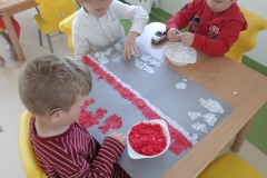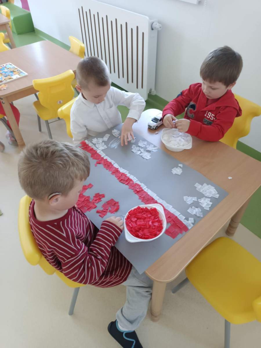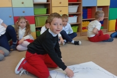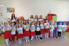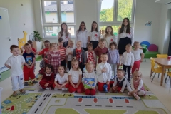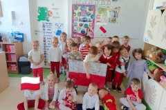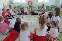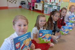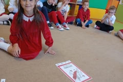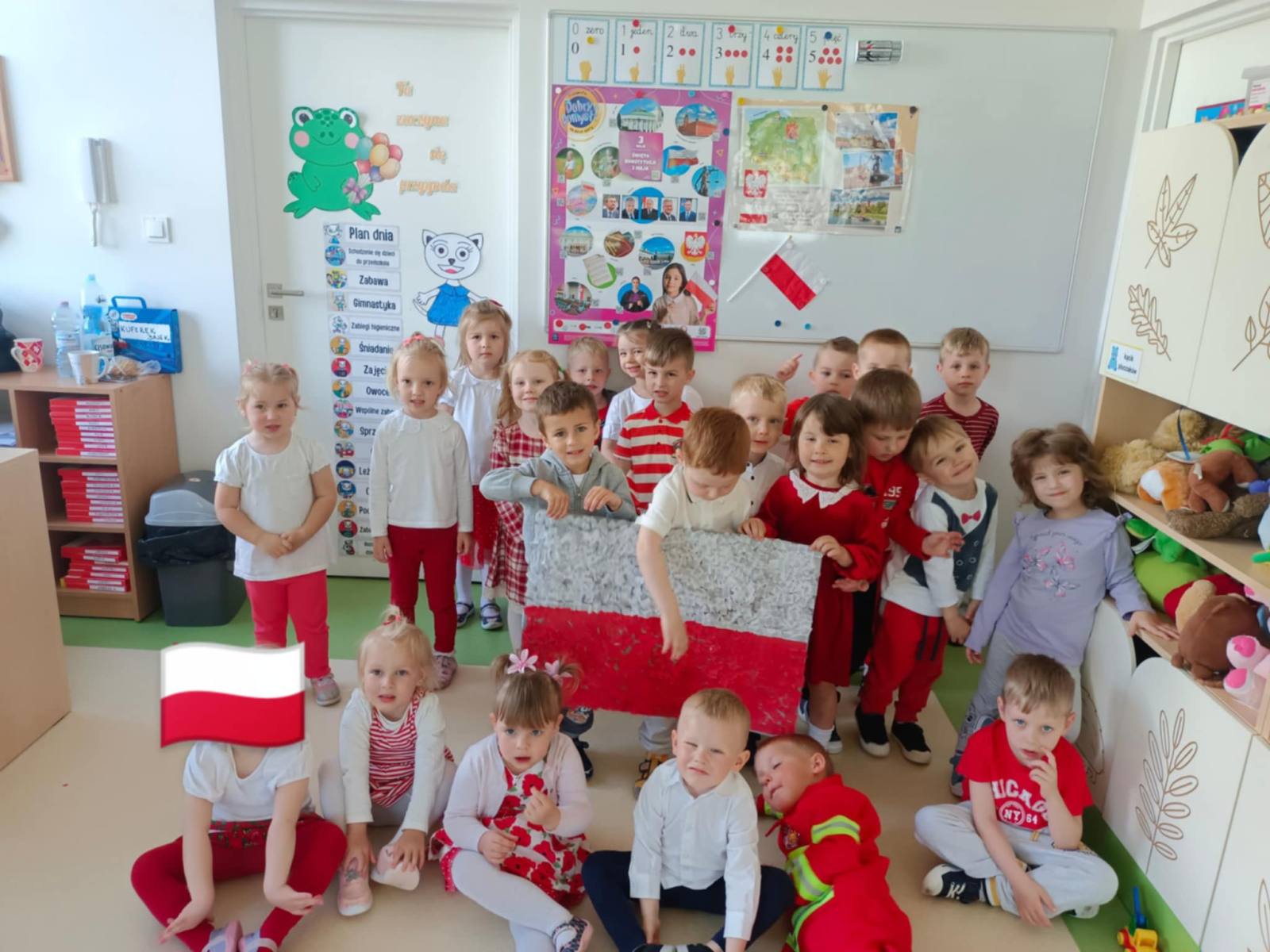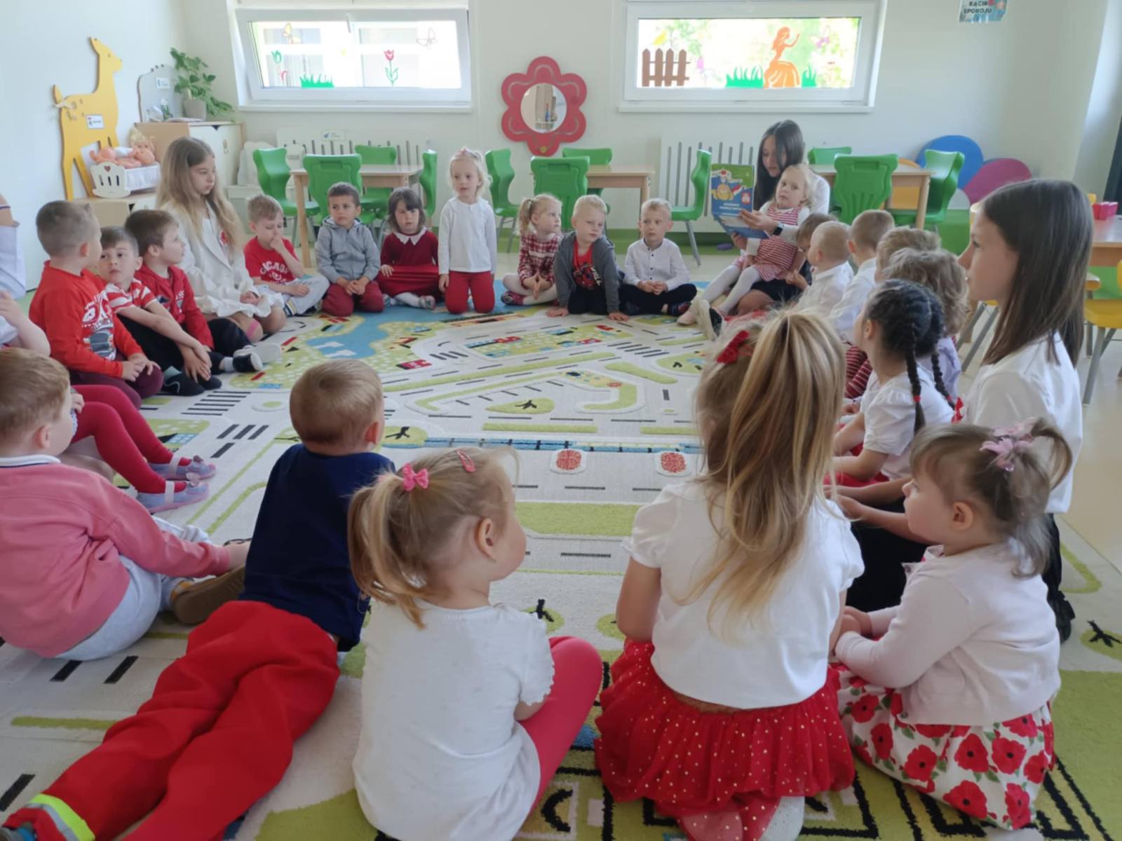 Z okazji Święta Konstytucji 3 Maja nasza szkoła zaangażowała się w projekt edukacyjny Biało – Czerwona dla przedszkolaka, którego celem jest utrwalenie wśród najmłodszych znajomości polskich symboli narodowych, realizowane podczas wspólnej zabawy ze starszymi kolegami ze szkół podstawowych. Z tej okazji przedszkolaków odwiedziły uczennice z klasy VI, które przedstawiły najmłodszym legendę o Lechu, Czechu i Rusie oraz zapoznały dzieci z polskimi symbolami narodowymi.