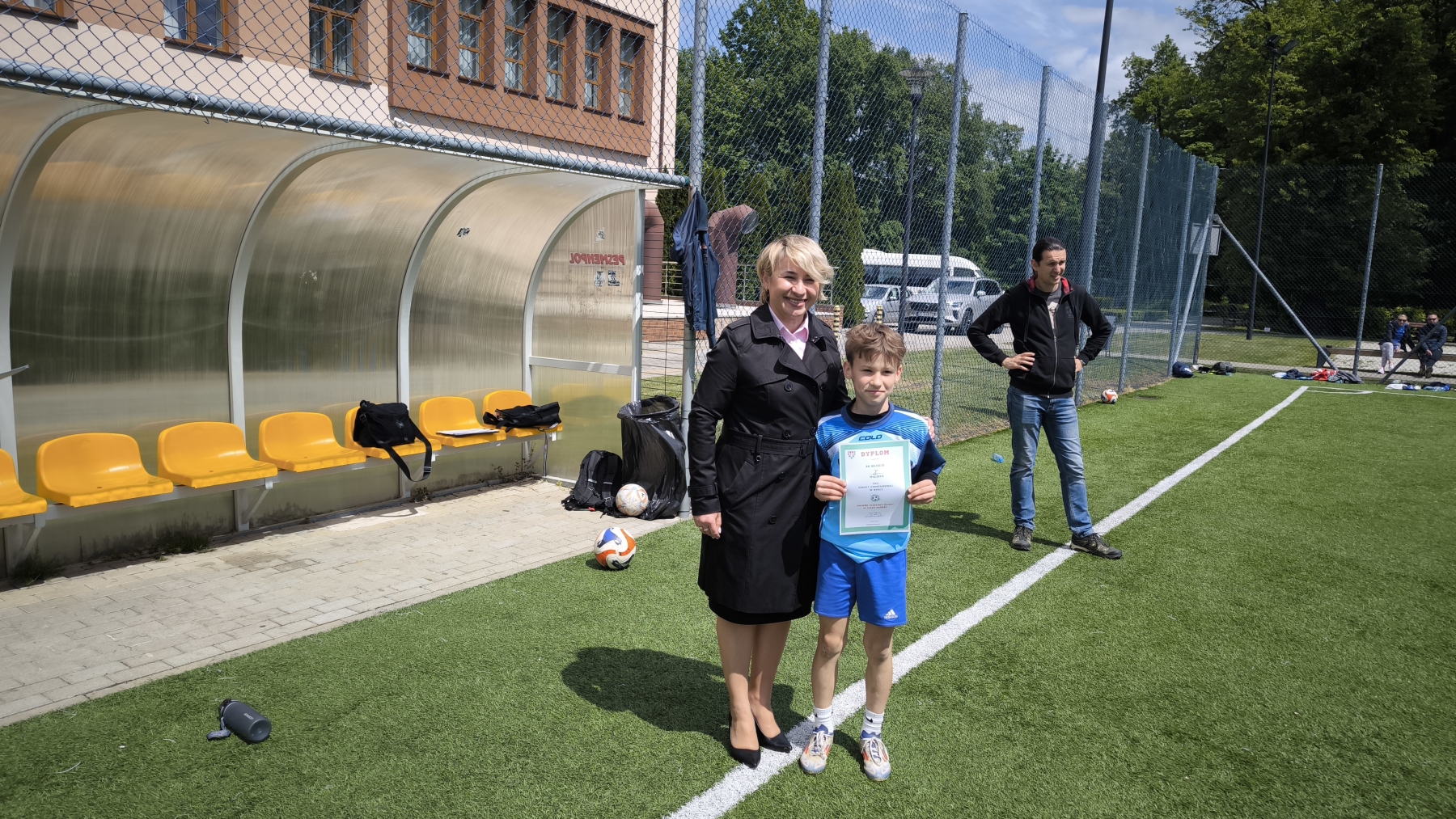 Uczestnicy sportowych zmagań otrzymali pamiątkowe dyplomy z rąk Pani Wójt Gminy Małgorzaty Moskal.