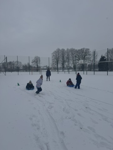Dnia 17 lutego uczniowie klasy I rozpoczęli kolejną edycję programu Mały Mistrz. Zimowa aura sprzyjała zdobyciu przez uczniów sprawności saneczkarza. Uczniowie dzielnie rywalizowali w wyścigach saneczkarskich par oraz bawili się radośnie na śniegu. Cotygodniowe zajęcia sportowe prowadzone przez nauczyciela wychowania fizycznego wraz z nauczycielami edukacji wczesnoszkolnej zachęcają do ruchu, pomagają rozwijać umiejętności ruchowe i kształtują pozytywne nawyki związane z aktywnością fizyczną.