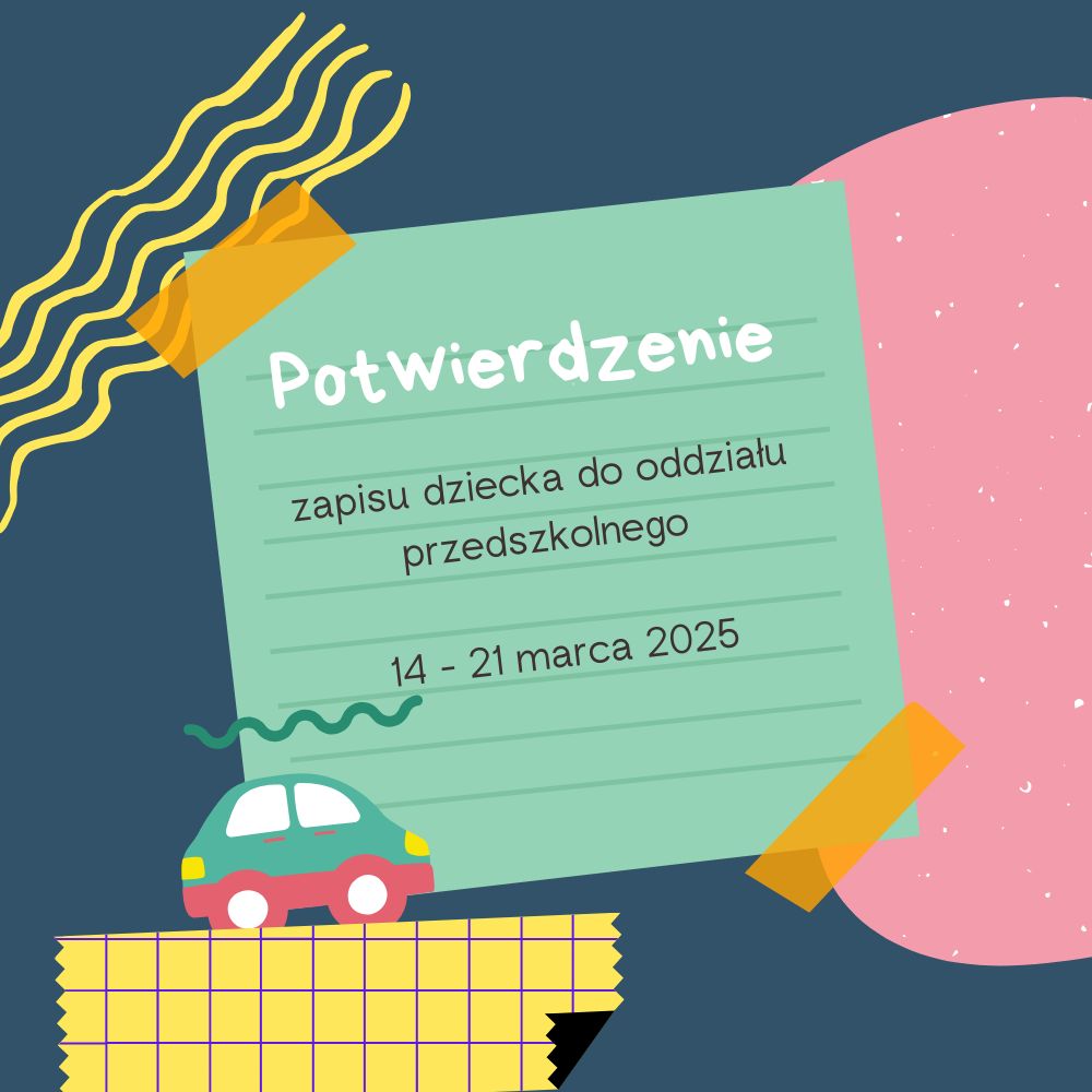 Rodzice dzieci zakwalifikowanych do oddziałów przedszkolnych proszeni są o złożenie druków „Potwierdzenia woli przyjęcia dziecka do oddziału przedszkolnego” w dniach od 14 do 21 marca b.r.