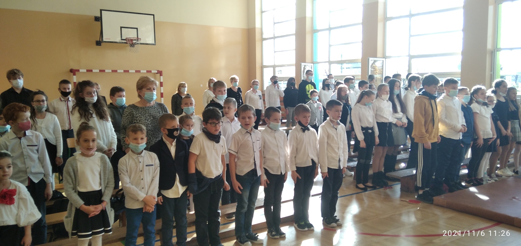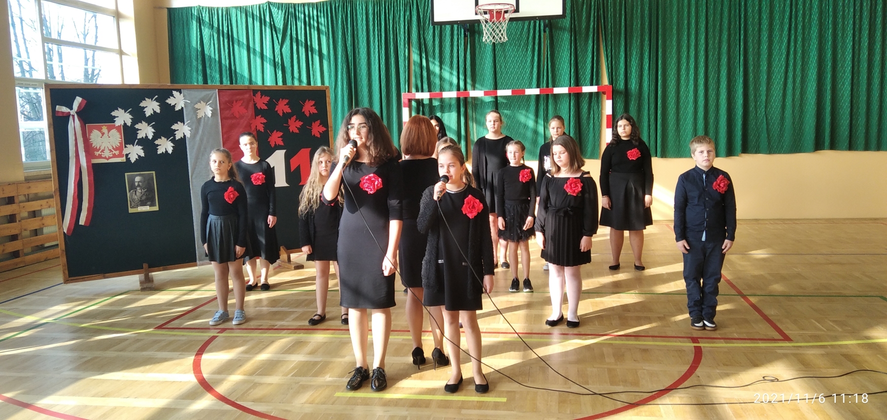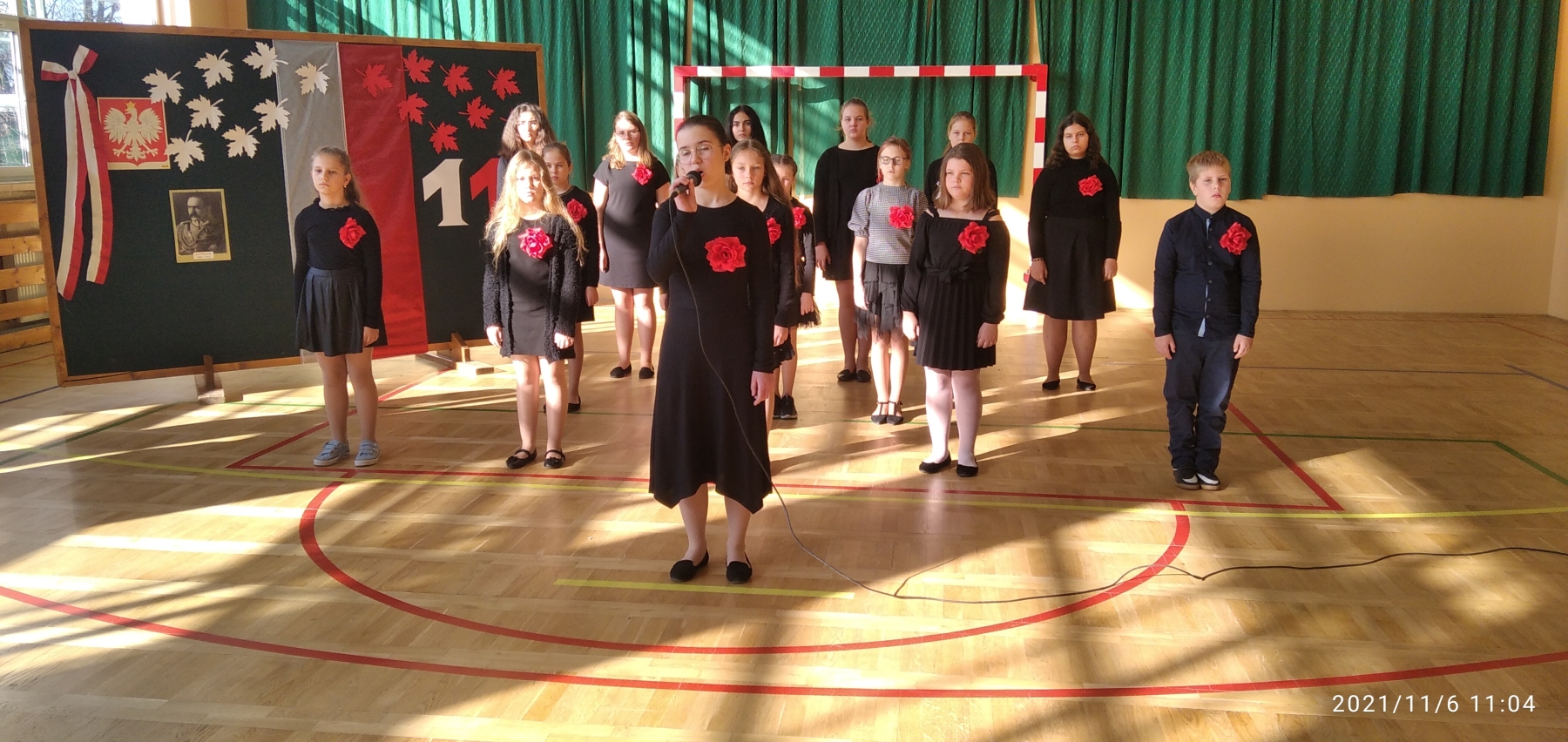 6 listopada w wyjątkowy sposób uczciliśmy 103. rocznicę odzyskania przez Polskę niepodległości. Chór Angel Voice prowadzony przez panią Katarzynę Srokę zabrał nas w muzyczną podróż w czasie. Usłyszeliśmy pieśni patriotyczne, które towarzyszyły Polakom na frontach I i II wojny światowej, a także piosenki współczesne, pięknie akcentujące miłość do Ojczyzny. Koncert zwieńczyło uroczyste odśpiewanie „Roty”. Później uczniowie starszych klas udali się na okoliczne cmentarze, aby oddać hołd poległym żołnierzom i mieszkańcom naszej miejscowości.