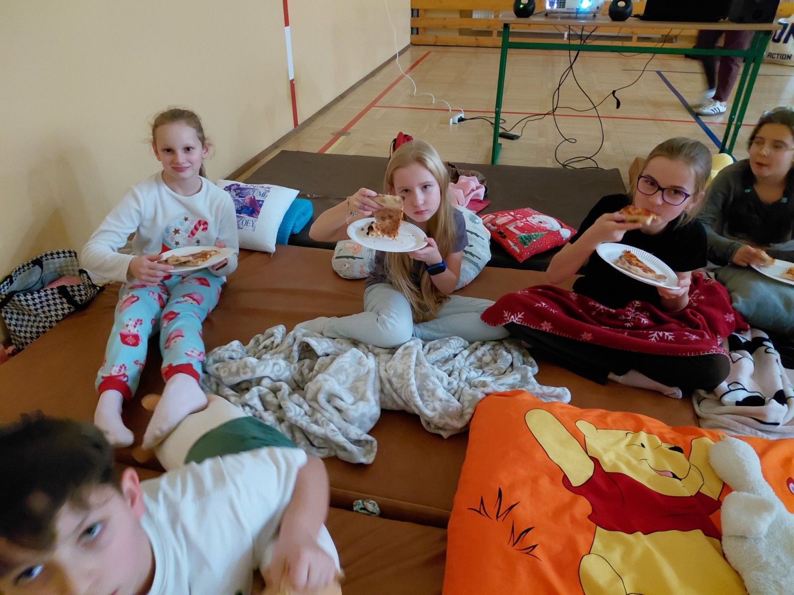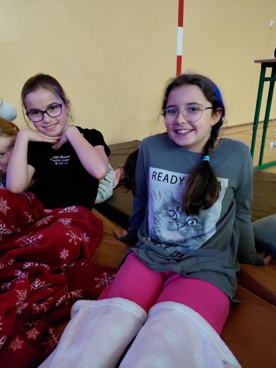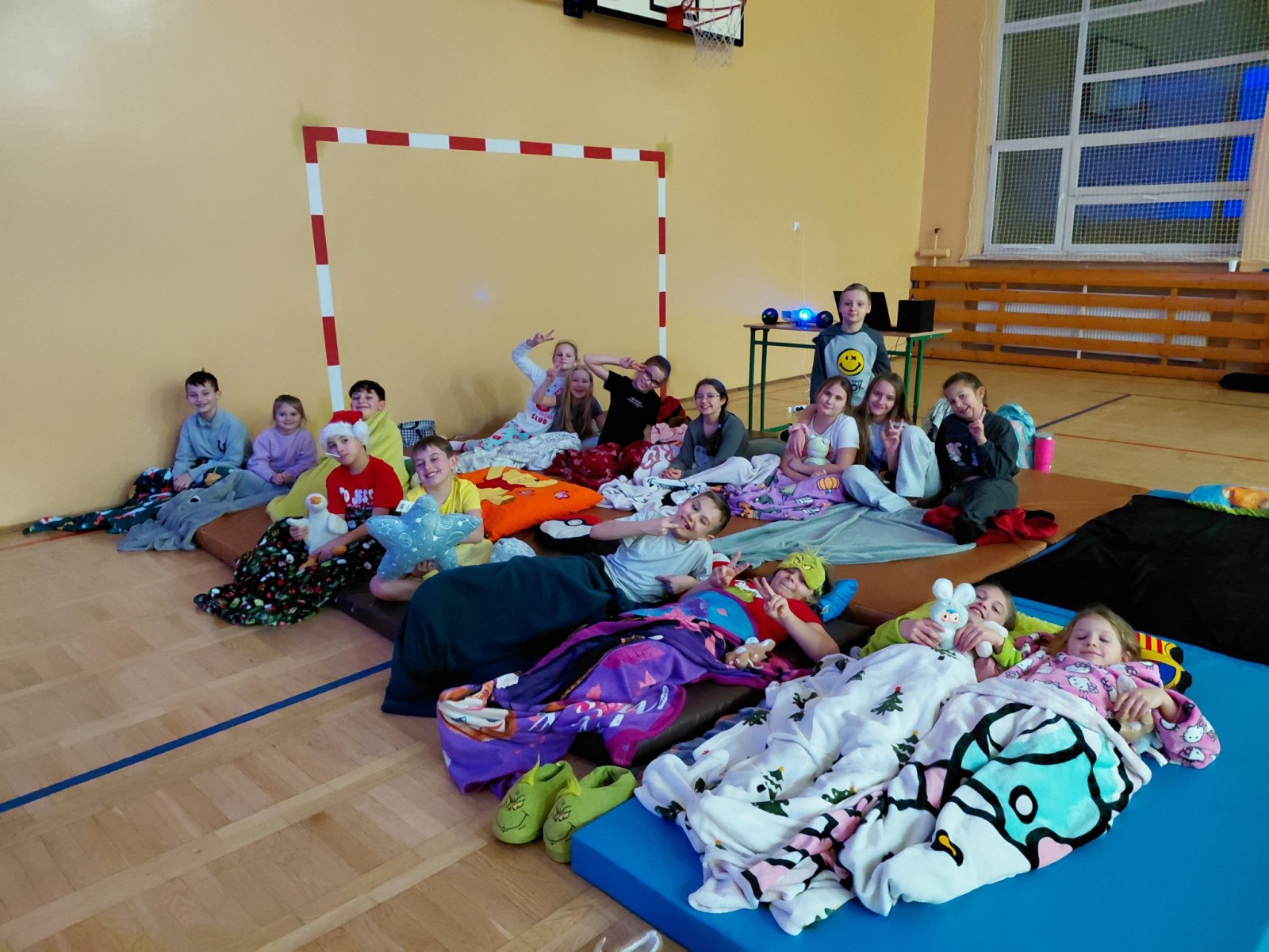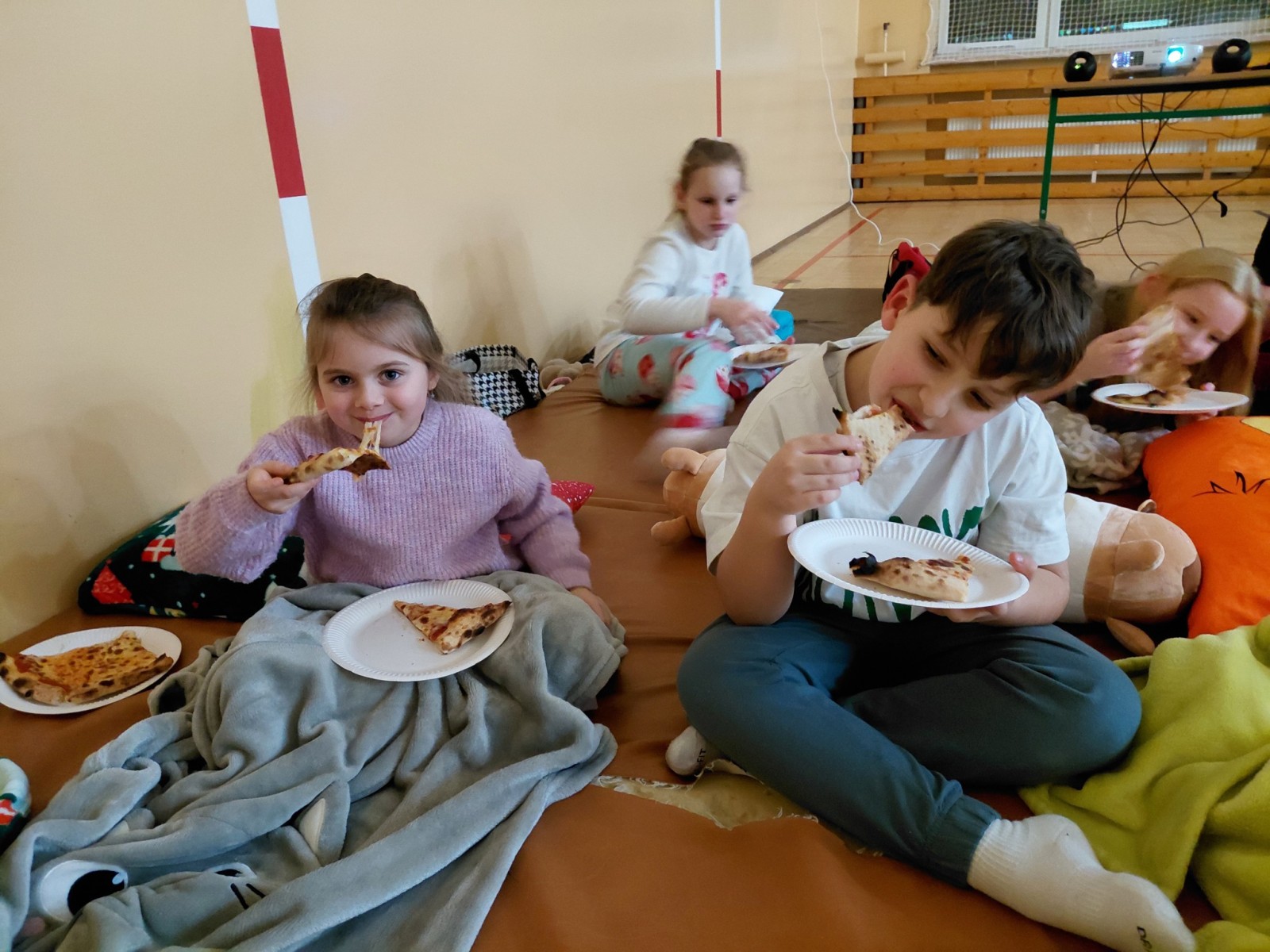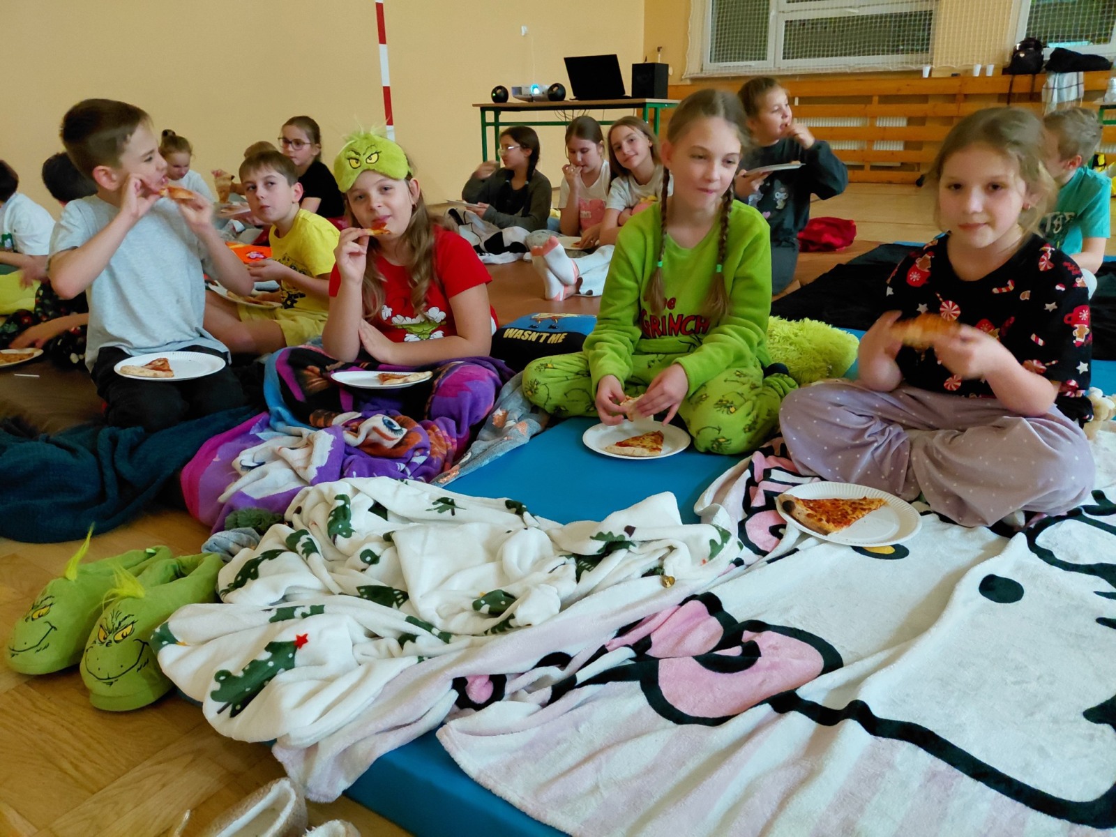 Uczniowie klasy trzeciej spędzili Mikołajki w niecodzienny sposób. Sala gimnastyczna w naszej szkole zamieniła się w salę kinową. Była pizza, popcorn, film oglądany w piżamach, a nawet maseczki na twarz. Było mnóstwo radości i frajdy!