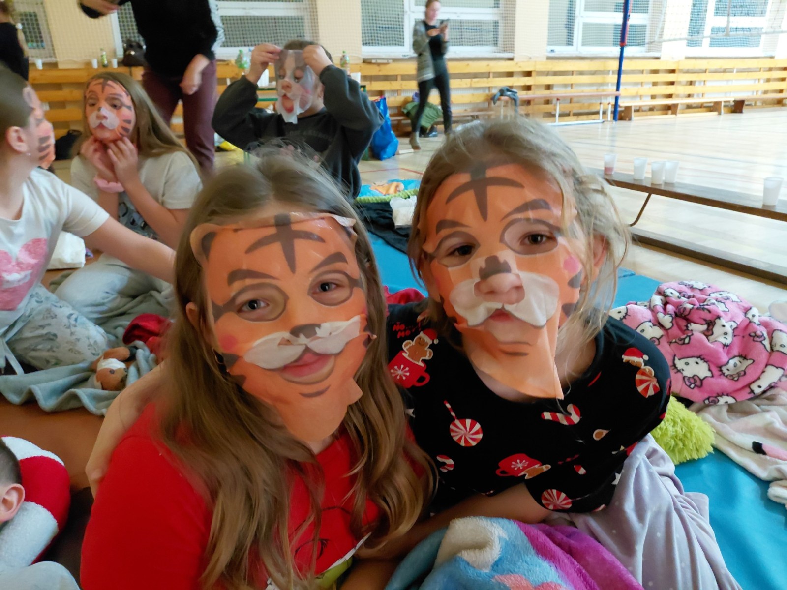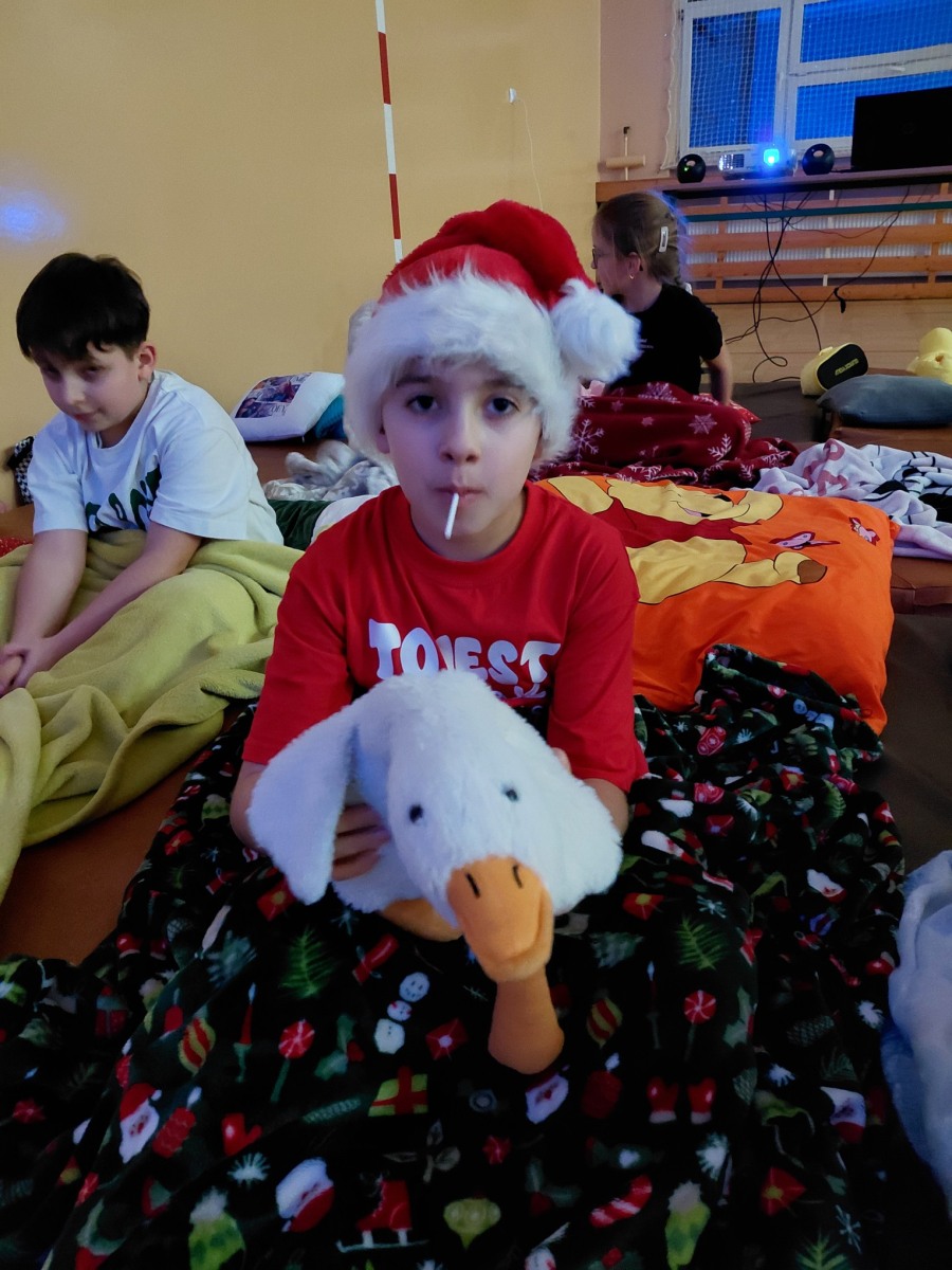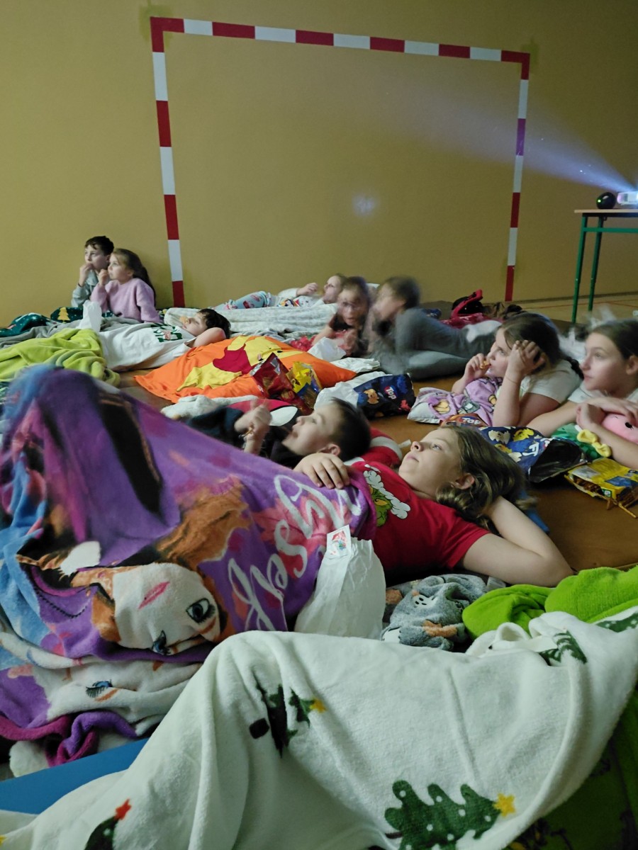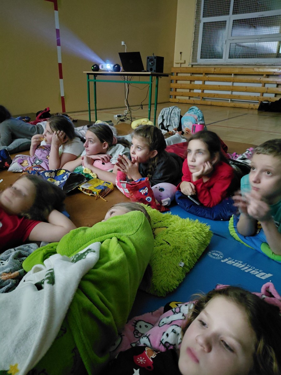 Uczniowie klasy trzeciej spędzili Mikołajki w niecodzienny sposób. Sala gimnastyczna w naszej szkole zamieniła się w salę kinową. Była pizza, popcorn, film oglądany w piżamach, a nawet maseczki na twarz. Było mnóstwo radości i frajdy!