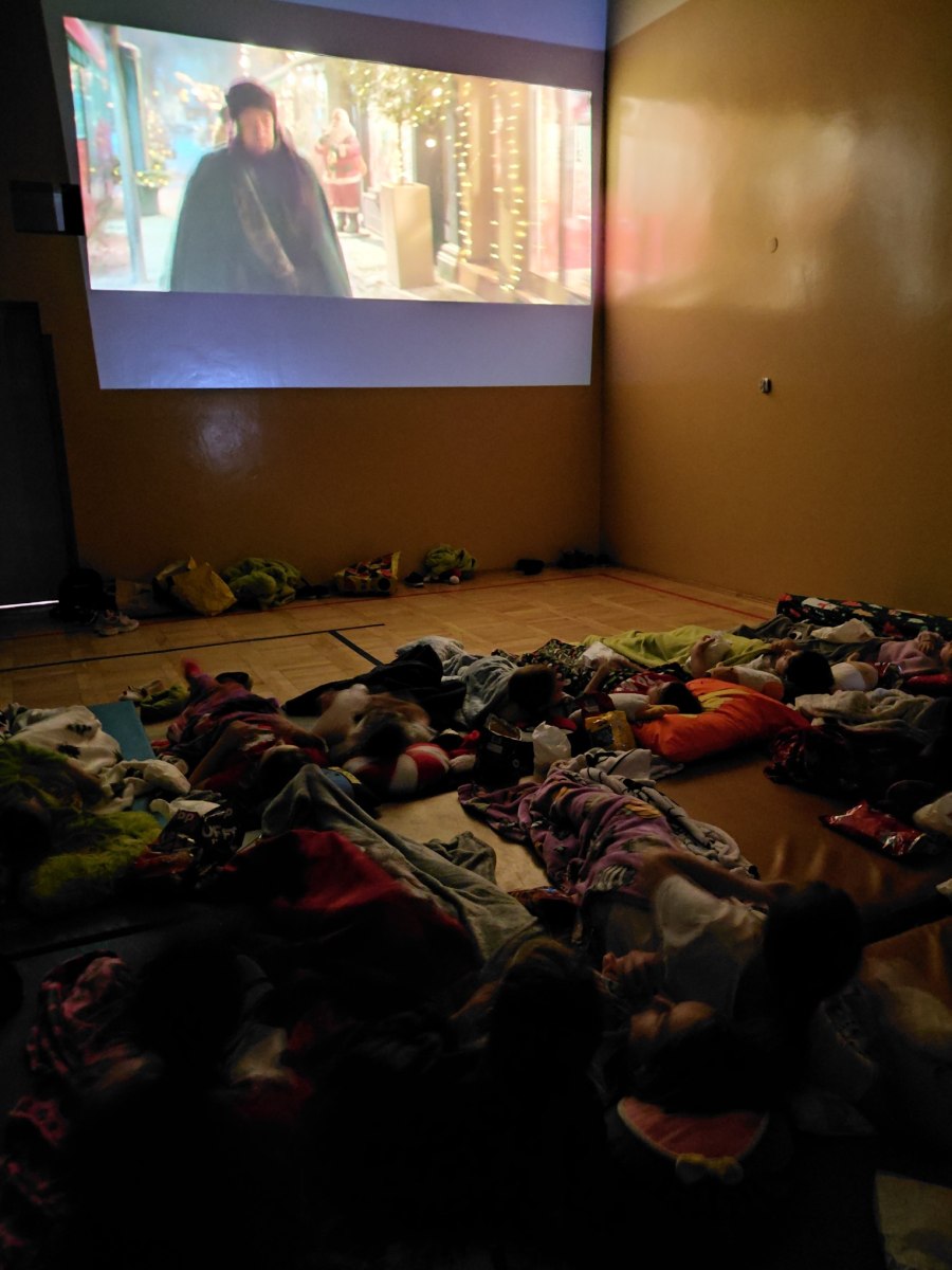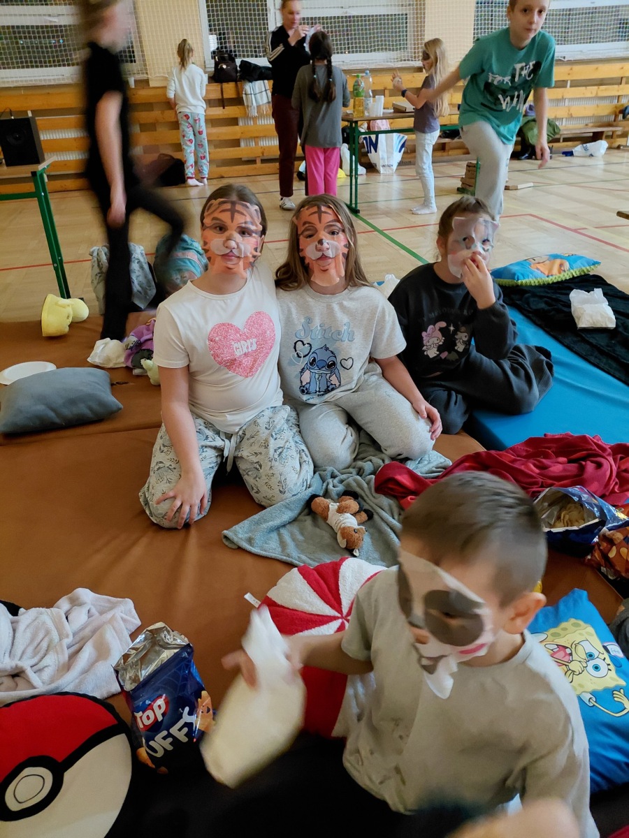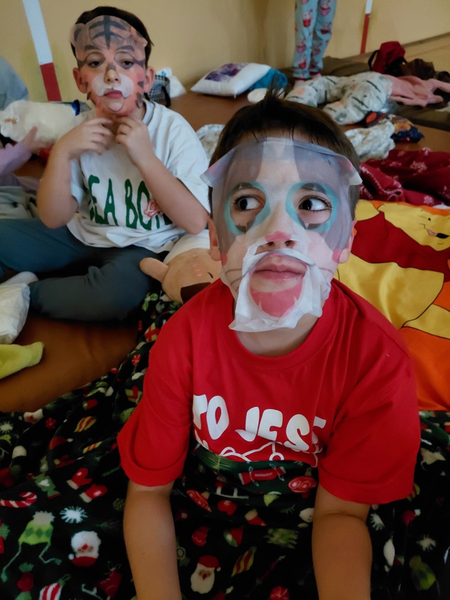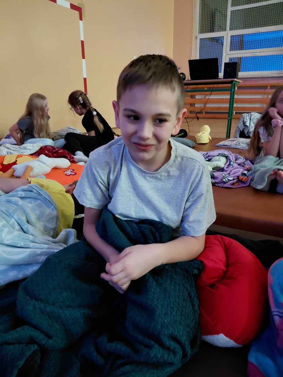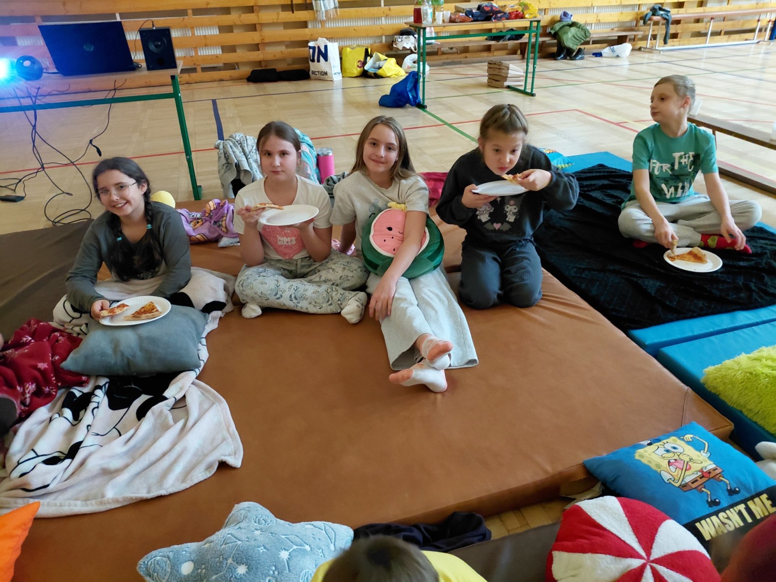 Uczniowie klasy trzeciej spędzili Mikołajki w niecodzienny sposób. Sala gimnastyczna w naszej szkole zamieniła się w salę kinową. Była pizza, popcorn, film oglądany w piżamach, a nawet maseczki na twarz. Było mnóstwo radości i frajdy!
