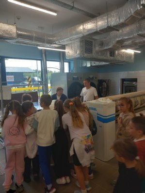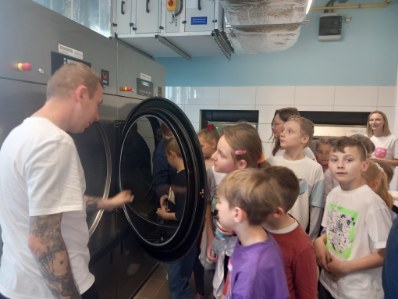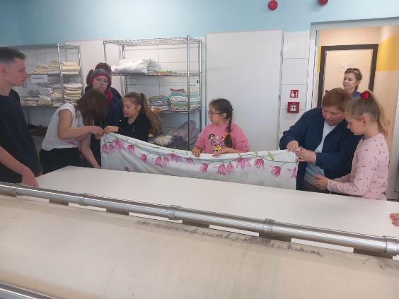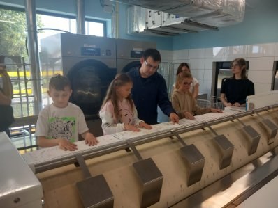 Uczniowie klasy 2 odwiedzili Powiatowy Zakład Aktywności Zawodowej w Dwudniakach, gdzie mieli doskonałą okazje by przyjrzeć się pracy w pracowni krawieckiej, niszczarni dokumentów oraz pralni. Dzieci z wielką ciekawością przyglądały się jak wygląda proces szycia czy zgrzewania naklejek na materiał. A możliwość samodzielnego maglowania i pomocy w obsłudze prania sprawiła im mnóstwo radości. Bardzo dziękujemy wszystkim pracownikom za gościnę i serdeczne przyjęcie.