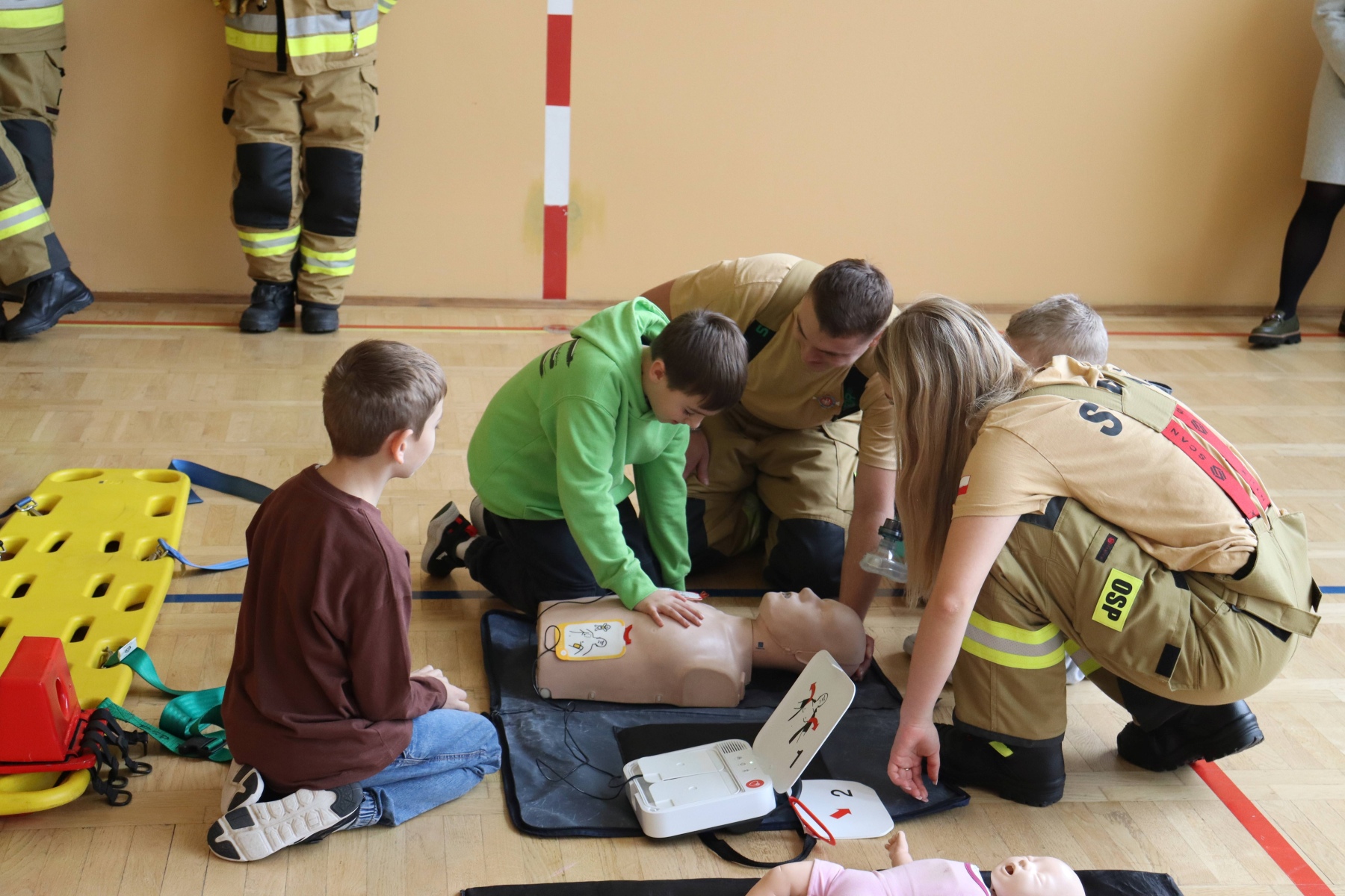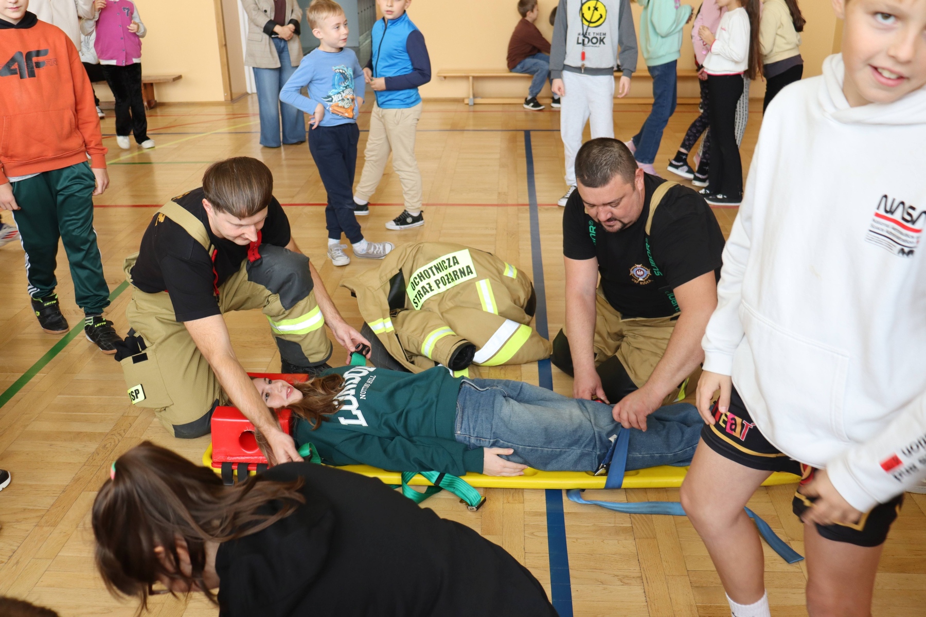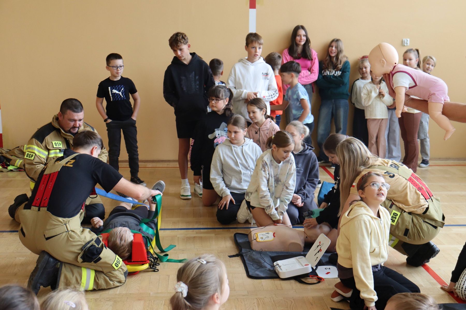 W dniu 27 października 2025 r. w trosce o bezpieczeństwo wychowanków w naszej szkole przeprowadzony został próbny alarm pożarowy połączony z ewakuacją wychowanków, nauczycieli oraz pracowników. Głównym celem ćwiczeń było zapoznanie wychowanków i pracowników szkoły z praktycznym zastosowaniem procedur dotyczących zachowania się w przypadku wybuchu pożaru lub powstania innego zagrożenia dla zdrowia i życia ludzi. Działania były nadzorowane przez Pana Andrzeja Pittnera – Komendanta Gminnego Ochrony Przeciwpożarowej i Zarządzania Kryzysowego oraz Prezesa Ochotniczej Staży Pożarnej w Rudce Pana Witolda Wiśniewskiego. Cała akcja przebiegła bardzo sprawnie i zgodnie zasadami postępowania w czasie zagrożenia pożarowego. Po usłyszeniu alarmu – 3 długich dzwonków – wszyscy sprawnie zaczęli opuszczać pomieszczenia budynku. Na uwagę zasługuje fakt, iż wychowankowie, nauczyciele, a także wszyscy pracownicy obsługi, zachowali środki bezpieczeństwa, doskonale znają drogi ewakuacyjne, a także bardzo szybko i sprawnie stawili się w miejscu bezpiecznej zbiórki. Przeprowadzona akcja była potwierdzeniem, że wszyscy wiedzą, jak się zachować w takich sytuacjach. Po zakończonej ewakuacji Strażacy z Jednostki OSP z Rudki przeprowadzili szkolenie dla uczniów z zakresu pierwszej pomocy przedmedycznej.