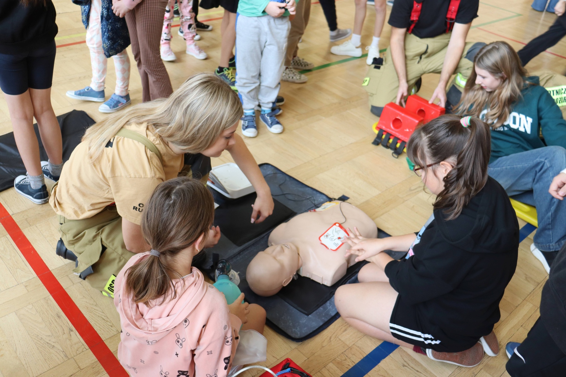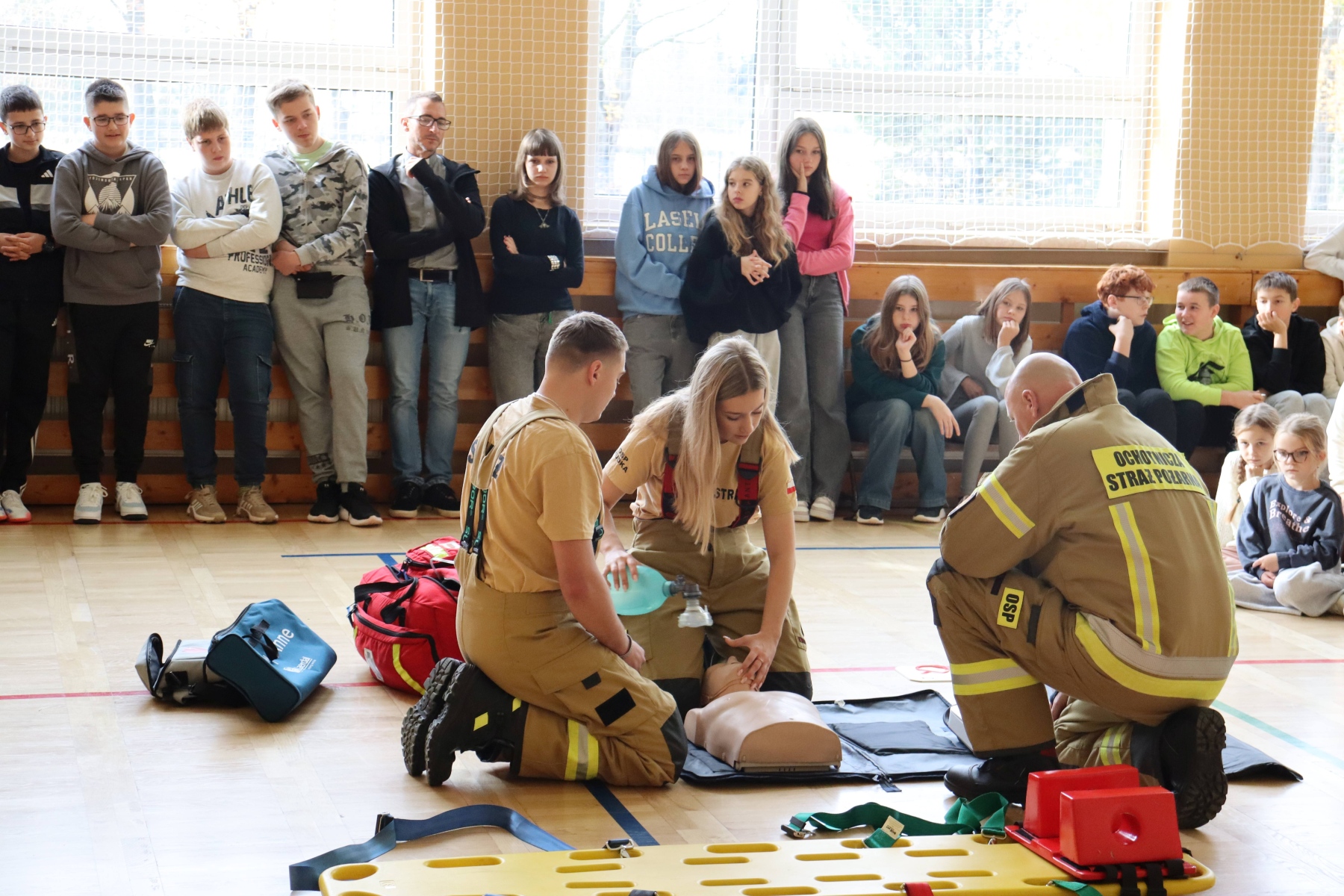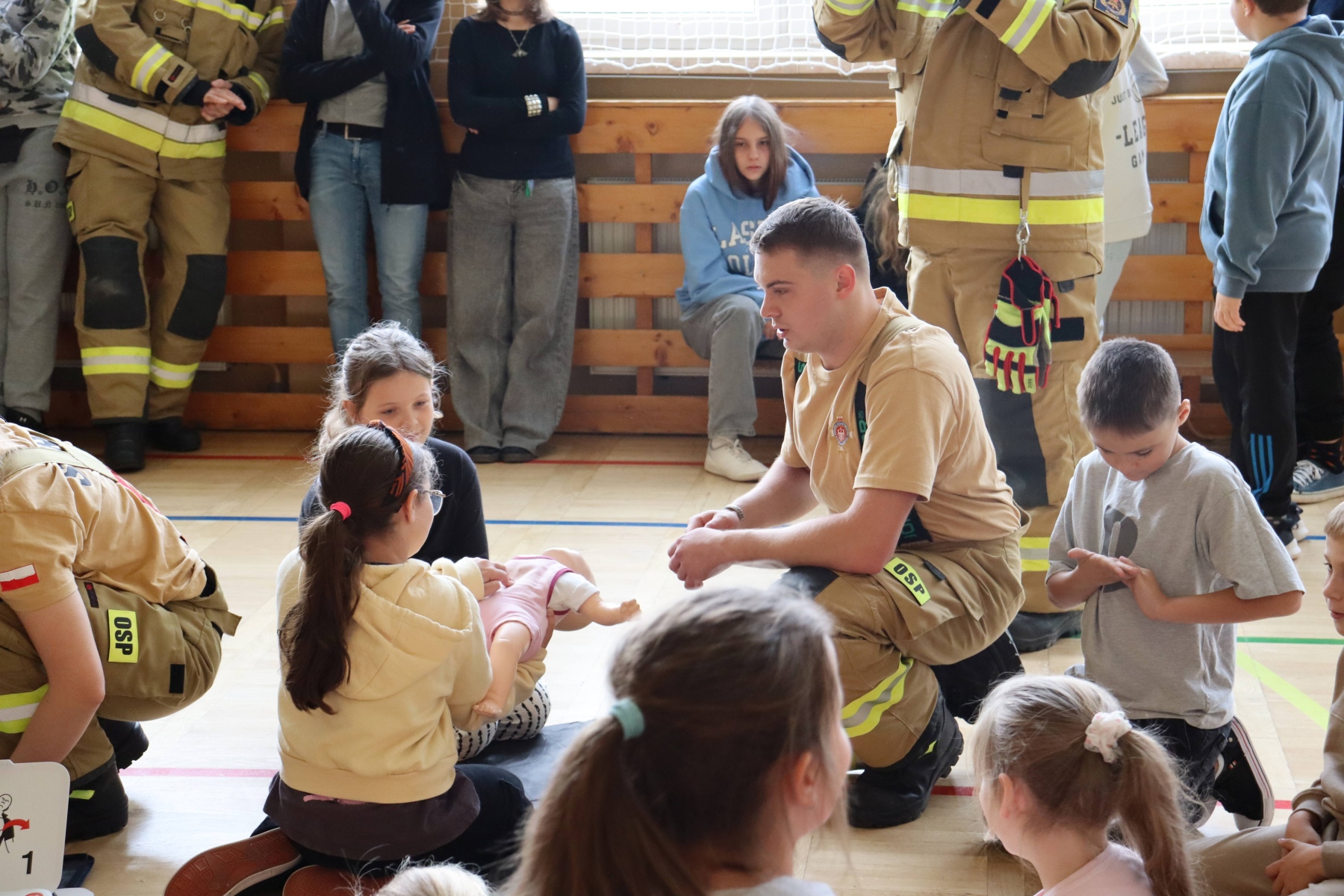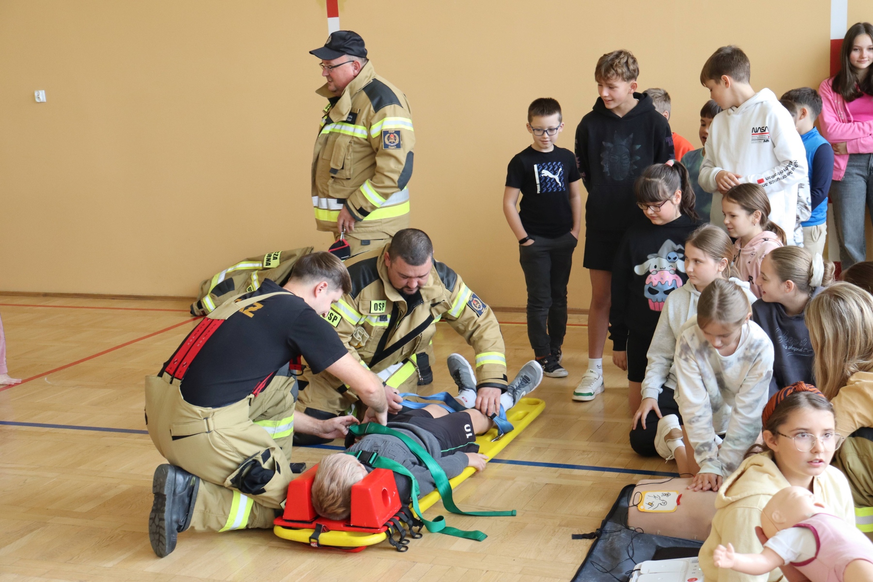 W dniu 27 października 2025 r. w trosce o bezpieczeństwo wychowanków w naszej szkole przeprowadzony został próbny alarm pożarowy połączony z ewakuacją wychowanków, nauczycieli oraz pracowników. Głównym celem ćwiczeń było zapoznanie wychowanków i pracowników szkoły z praktycznym zastosowaniem procedur dotyczących zachowania się w przypadku wybuchu pożaru lub powstania innego zagrożenia dla zdrowia i życia ludzi. Działania były nadzorowane przez Pana Andrzeja Pittnera – Komendanta Gminnego Ochrony Przeciwpożarowej i Zarządzania Kryzysowego oraz Prezesa Ochotniczej Staży Pożarnej w Rudce Pana Witolda Wiśniewskiego. Cała akcja przebiegła bardzo sprawnie i zgodnie zasadami postępowania w czasie zagrożenia pożarowego. Po usłyszeniu alarmu – 3 długich dzwonków – wszyscy sprawnie zaczęli opuszczać pomieszczenia budynku. Na uwagę zasługuje fakt, iż wychowankowie, nauczyciele, a także wszyscy pracownicy obsługi, zachowali środki bezpieczeństwa, doskonale znają drogi ewakuacyjne, a także bardzo szybko i sprawnie stawili się w miejscu bezpiecznej zbiórki. Przeprowadzona akcja była potwierdzeniem, że wszyscy wiedzą, jak się zachować w takich sytuacjach. Po zakończonej ewakuacji Strażacy z Jednostki OSP z Rudki przeprowadzili szkolenie dla uczniów z zakresu pierwszej pomocy przedmedycznej.