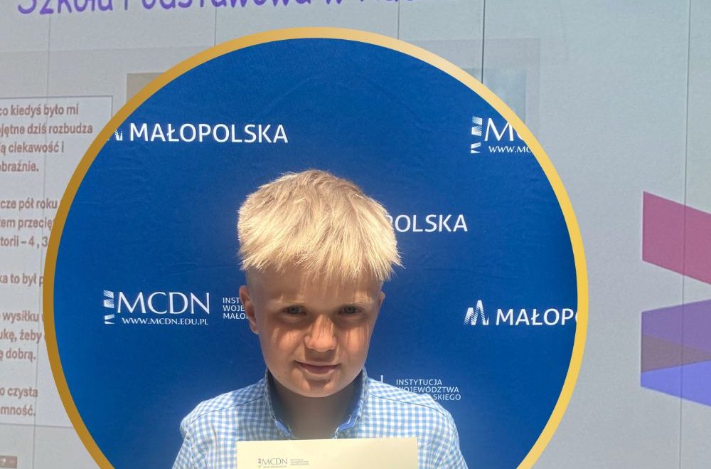 2025-06-06 Miło mam poinformować, że nasz uczeń Bartłomiej Bazyk z klasy 5 otrzymał wyróżnienie w konkursie na prezentację sukcesu wynikającego z udziału w projekcie „Małopolski program wspierania uczniów”.