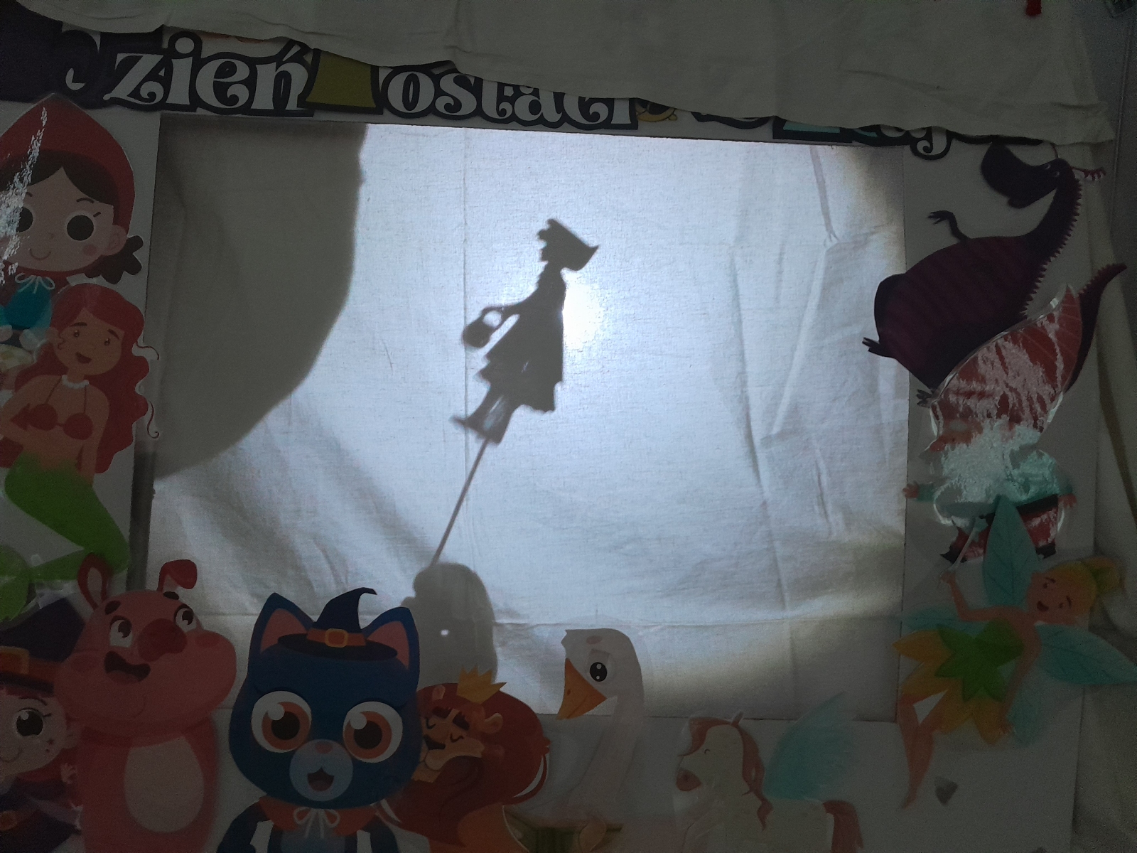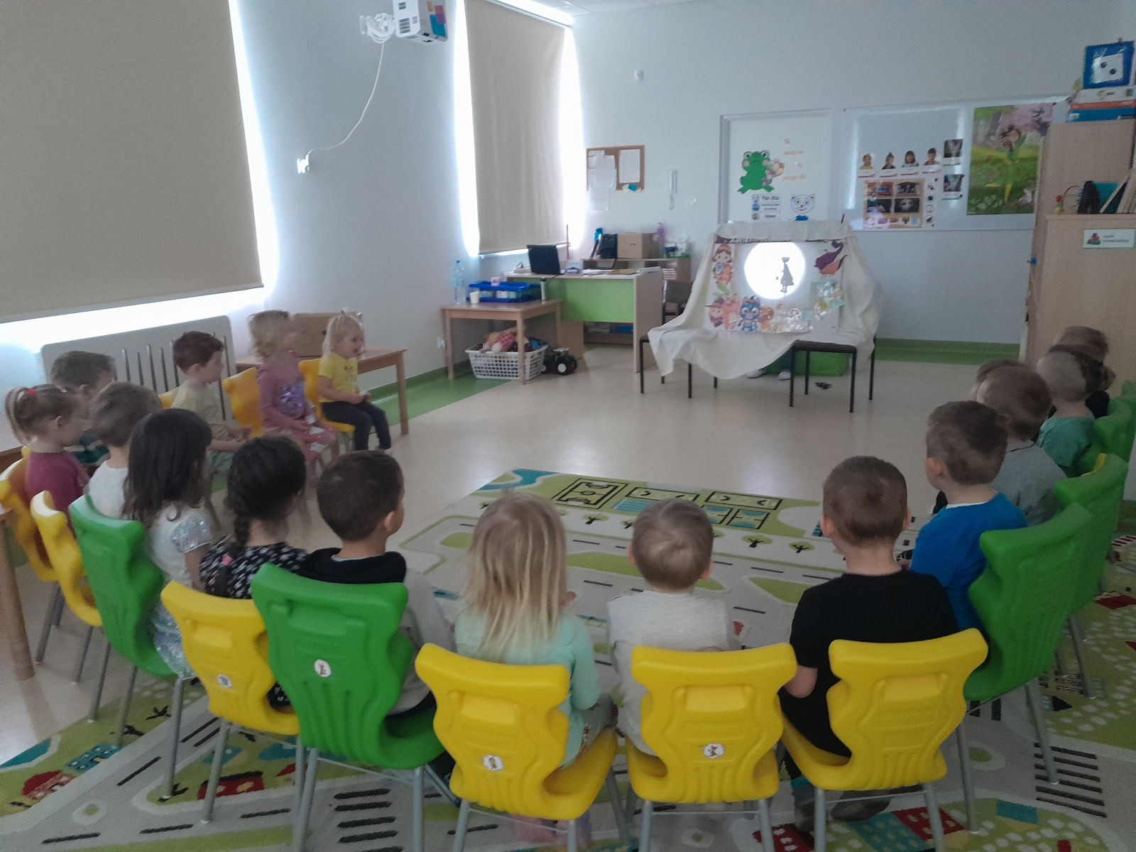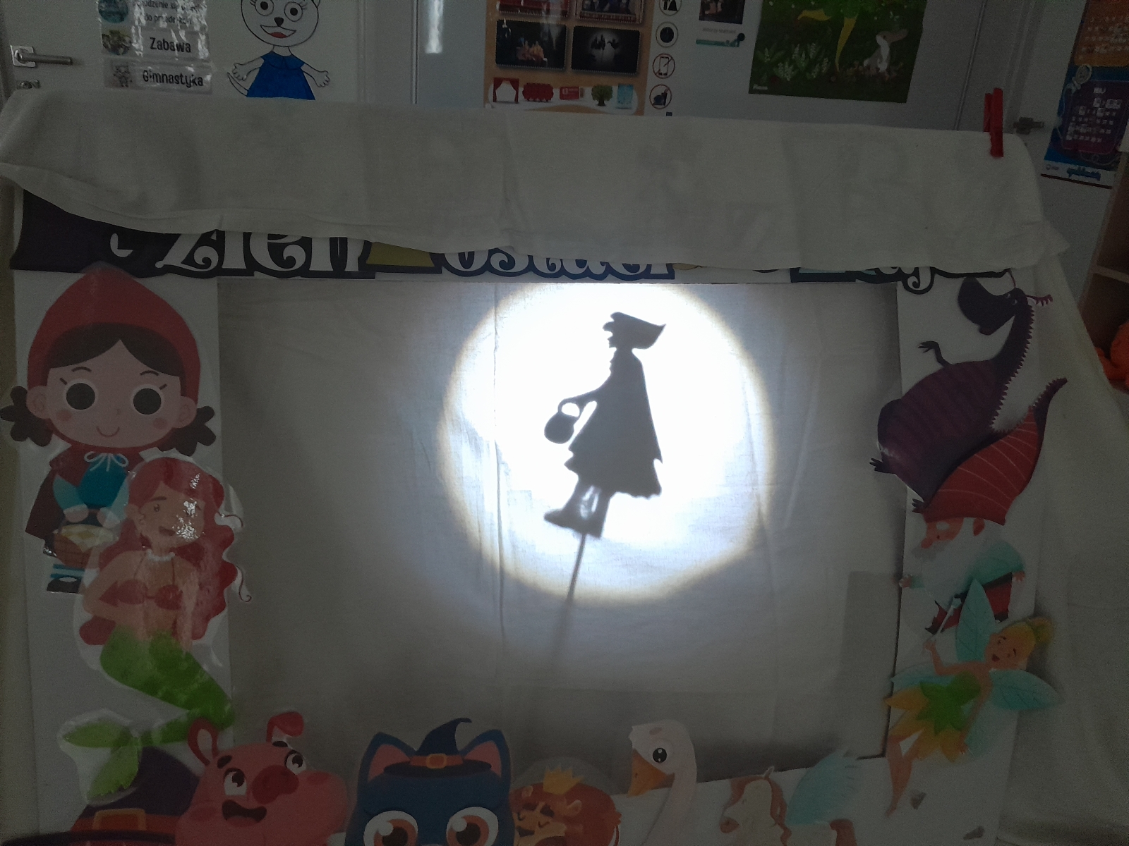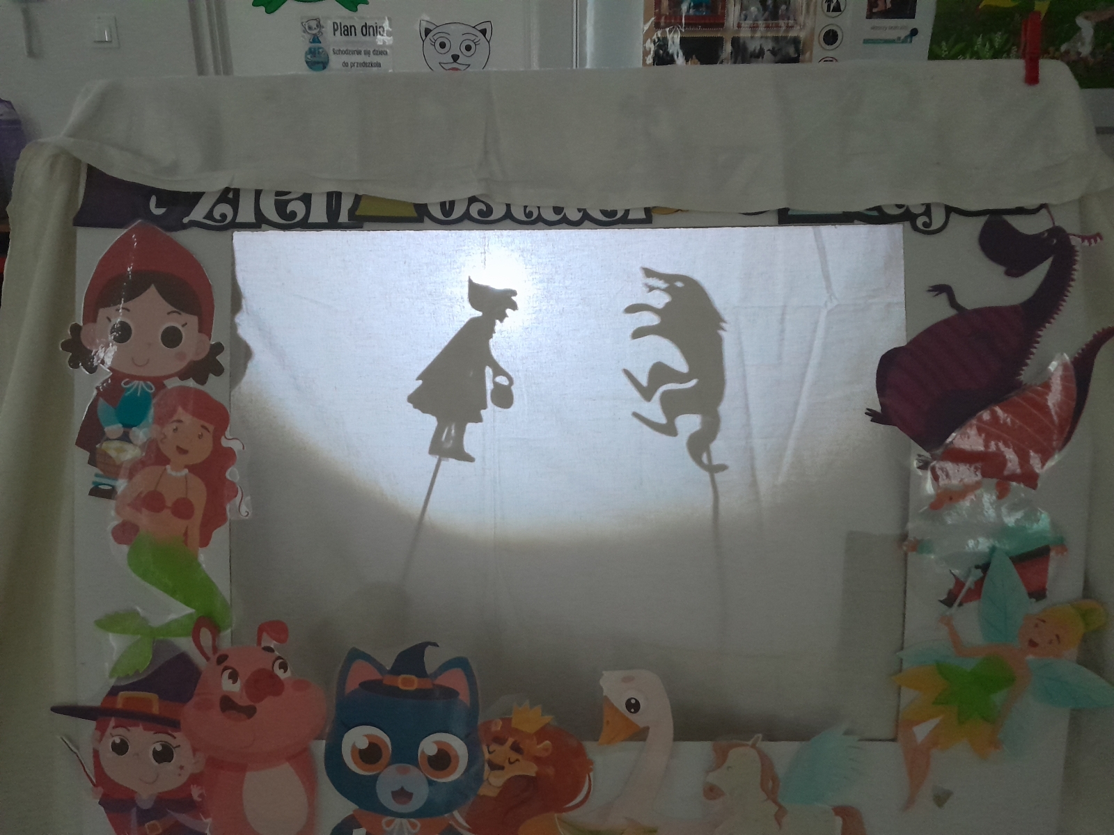Z okazji Międzynarodowego Dnia Teatru, najmłodsze przedszkolaki obejrzały „Czerwonego Kapturka” w teatrzyku cieni. Maluszki kupiły samodzielnie bilet metodą jeden do jednego, zajęły miejsce na widowni i z zaciekawieniem śledziły przygody bohaterów baśni. Spektakl przypomniał im o tym, że nie należy ufać nieznajomym. Na zakończenie, dzieci mogły wcielić się w role aktorów.