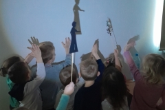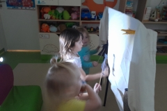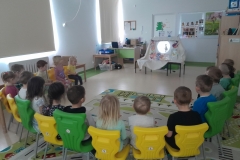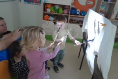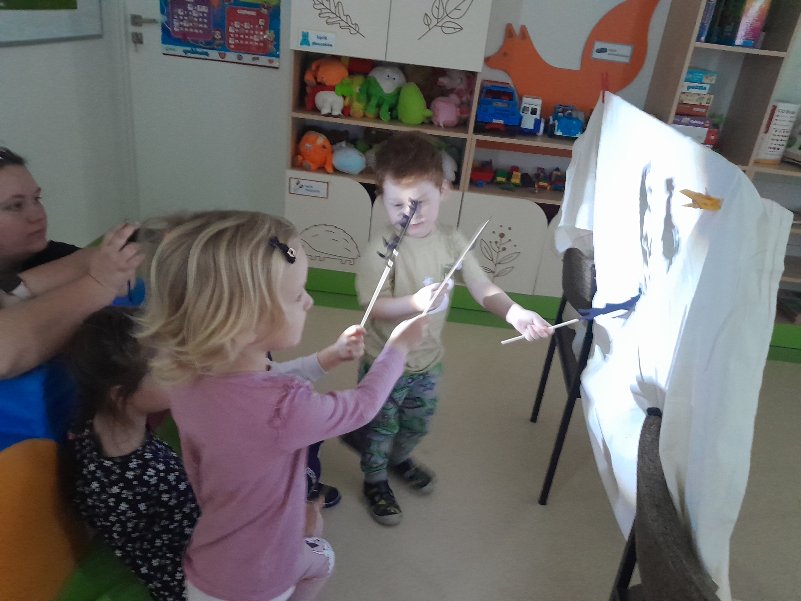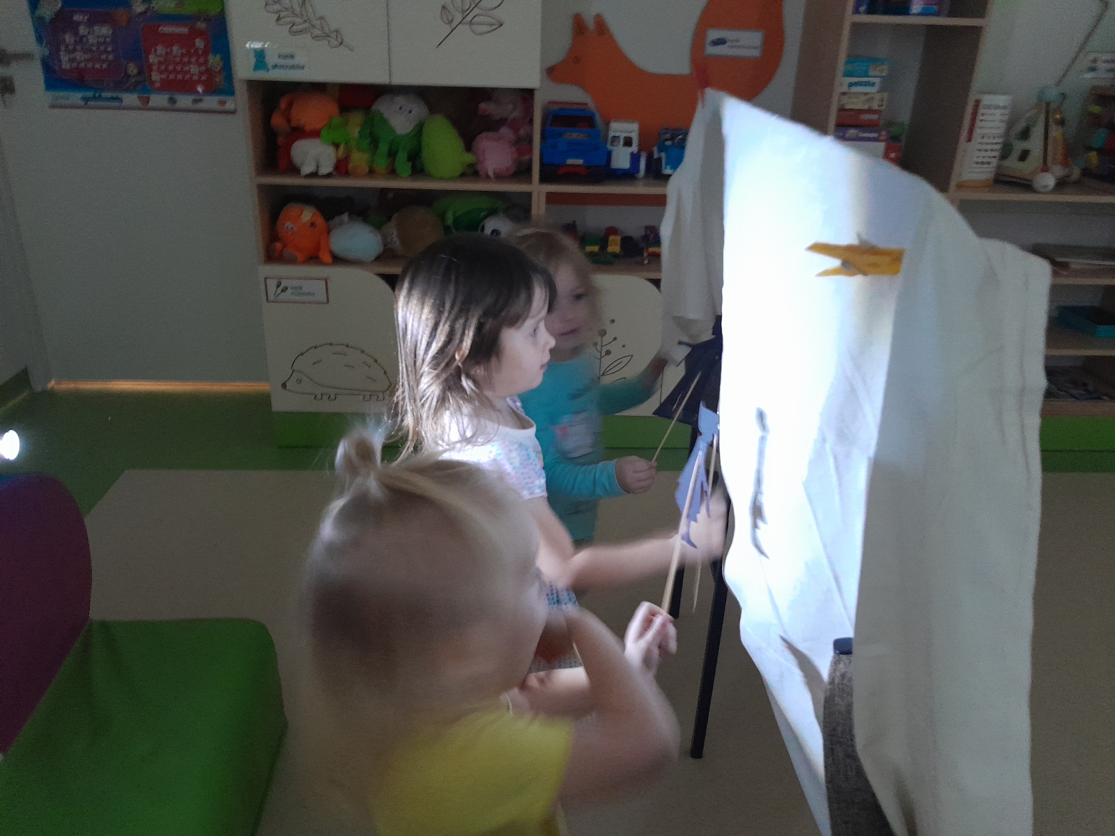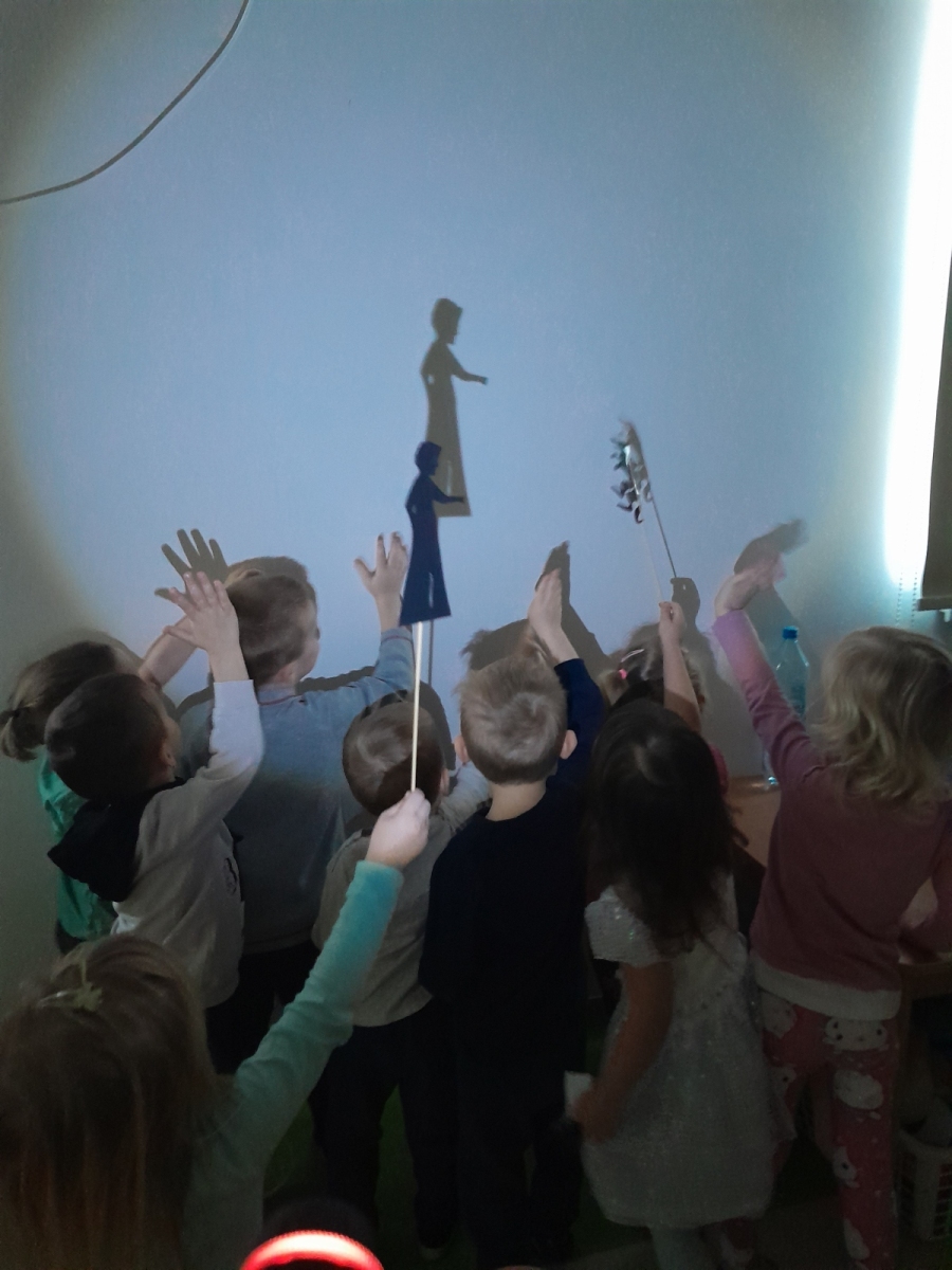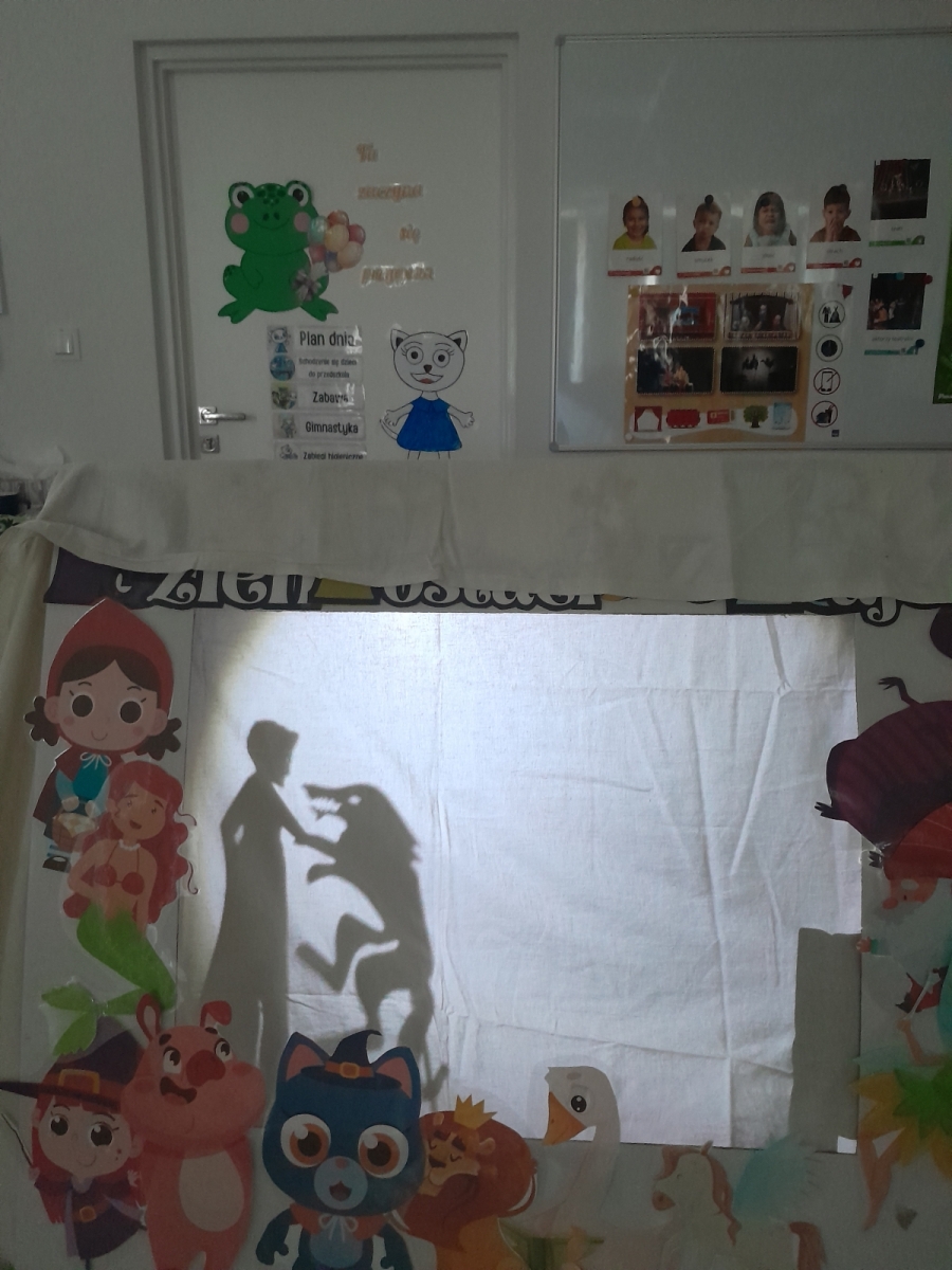 Z okazji Międzynarodowego Dnia Teatru, najmłodsze przedszkolaki obejrzały „Czerwonego Kapturka” w teatrzyku cieni. Maluszki kupiły samodzielnie bilet metodą jeden do jednego, zajęły miejsce na widowni i z zaciekawieniem śledziły przygody bohaterów baśni. Spektakl przypomniał im o tym, że nie należy ufać nieznajomym. Na zakończenie, dzieci mogły wcielić się w role aktorów.