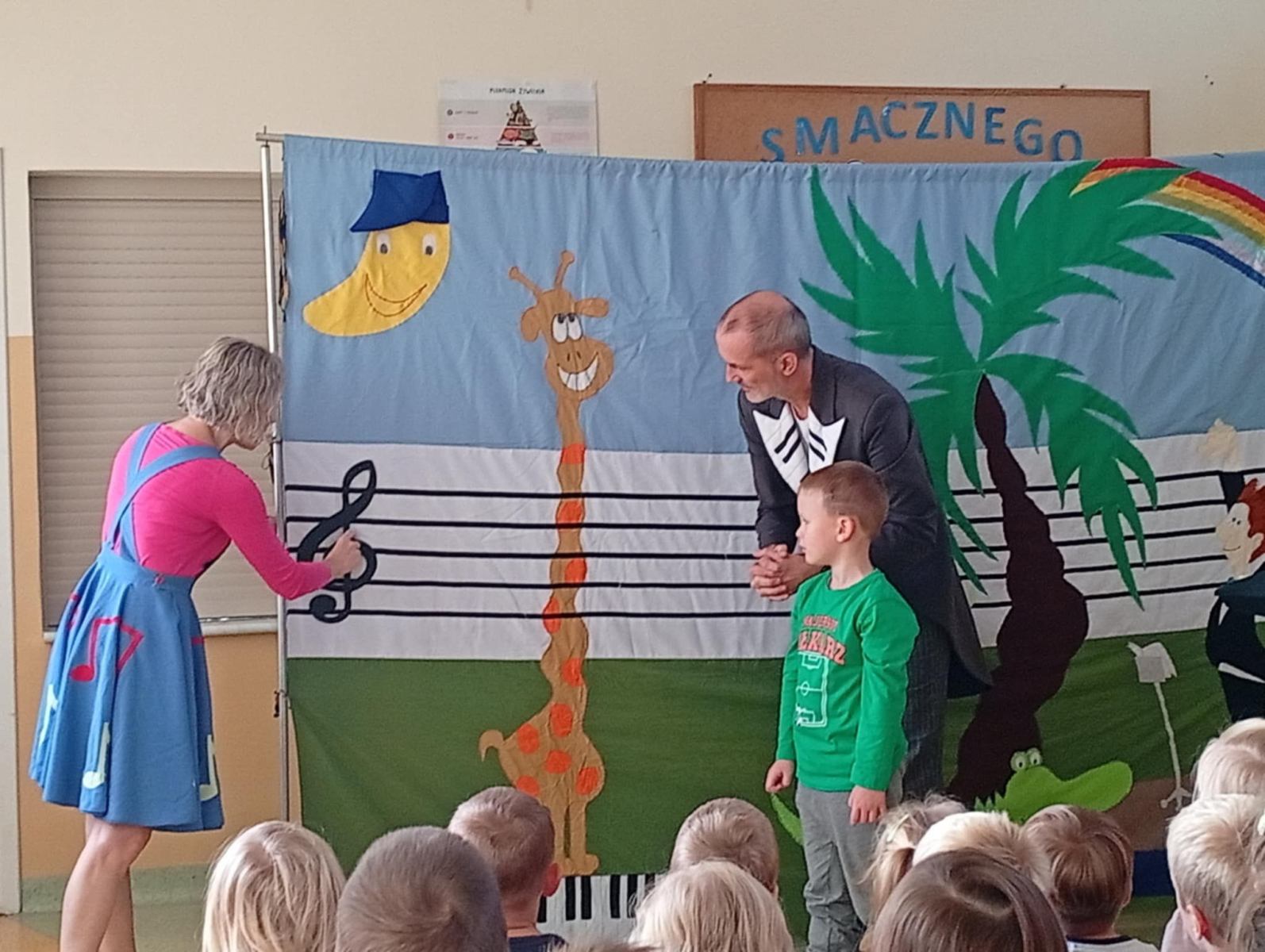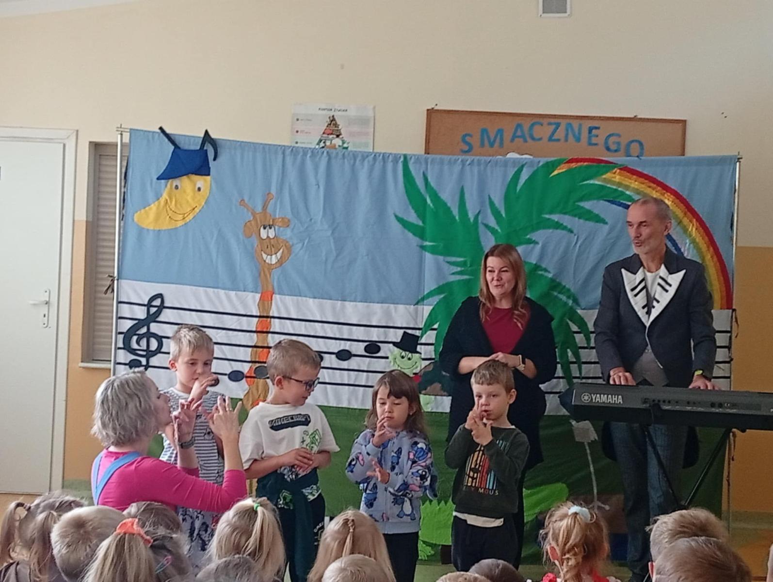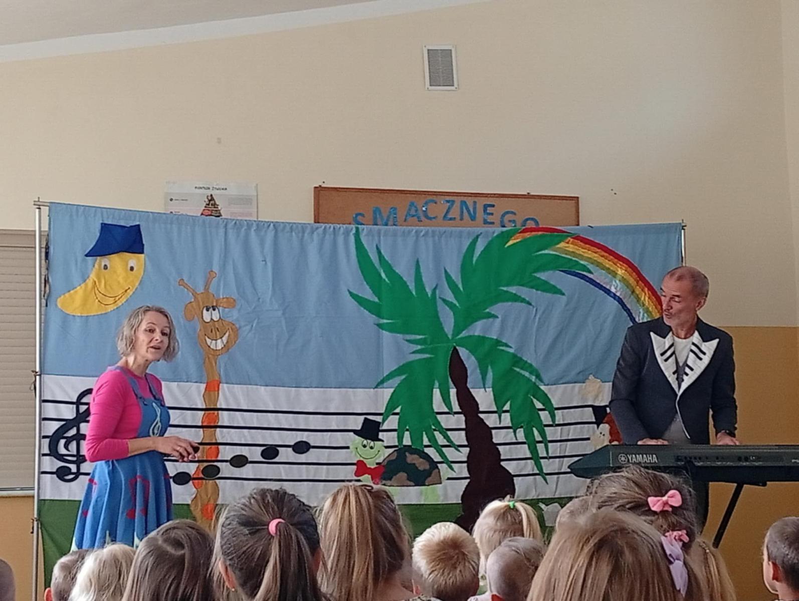 2 października w oddziałach przedszkolnych odbył się wyjątkowy spektakl muzyczny pt. „Wiolinka i Bemol – Skąd się bierze muzyka?”. Dzieci zostały wprowadzone do magicznego świata dźwięków przez sympatyczną Wiolinkę i wesołego Bemola, którzy w zabawny i przystępny sposób wprowadzili dzieci w tajemnice powstawania muzyki. Podczas przedstawienia dzieci dowiedziały się skąd biorą się dźwięki, jak działają różne instrumenty muzyczne, co to jest rytm, melodia i harmonia. Nie zabrakło wspólnego śpiewania, klaskania do rytmu oraz dobrej zabawy. Spektakl był nie tylko interesującą lekcją muzyki, ale też wspaniałym doświadczeniem artystycznym.