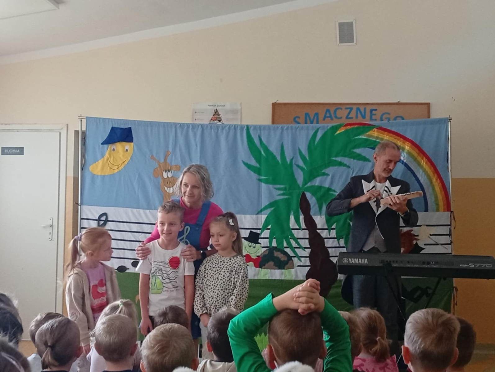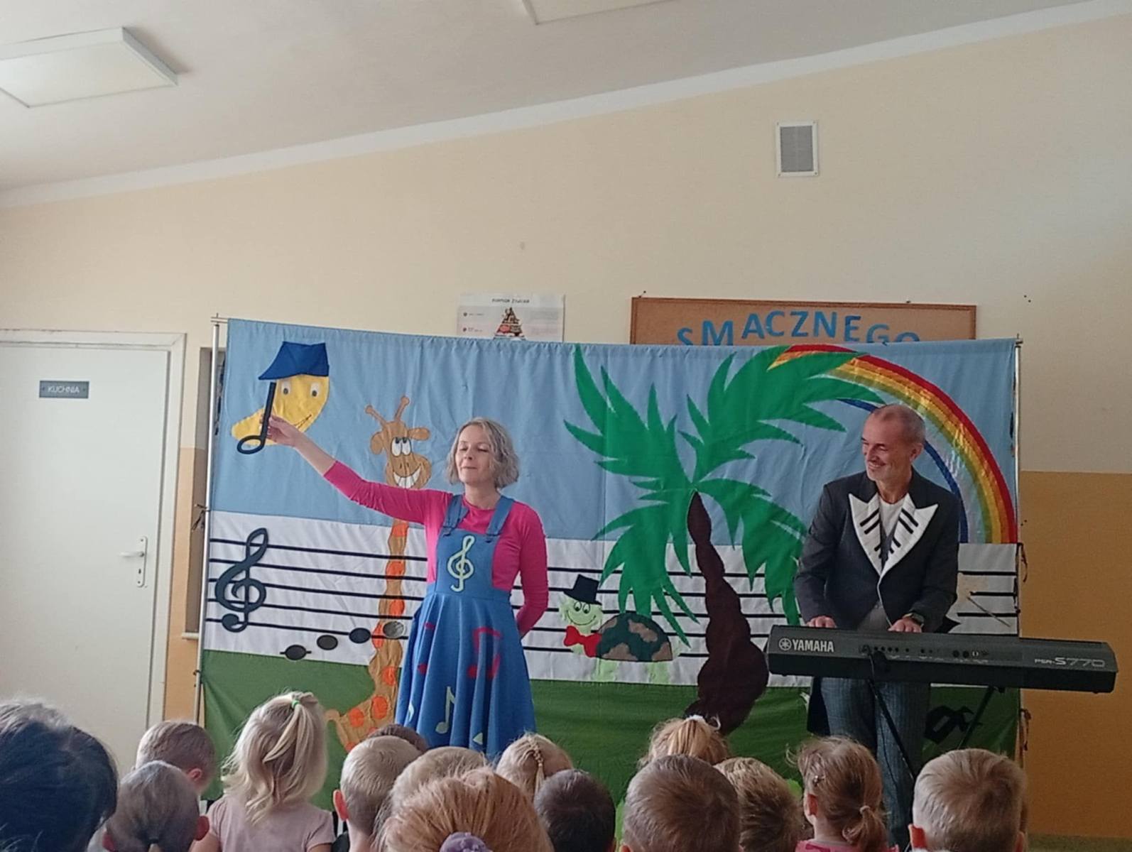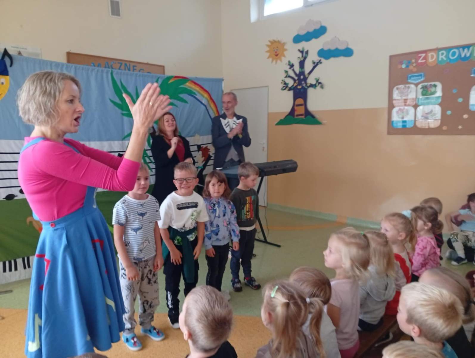 2 października w oddziałach przedszkolnych odbył się wyjątkowy spektakl muzyczny pt. „Wiolinka i Bemol – Skąd się bierze muzyka?”. Dzieci zostały wprowadzone do magicznego świata dźwięków przez sympatyczną Wiolinkę i wesołego Bemola, którzy w zabawny i przystępny sposób wprowadzili dzieci w tajemnice powstawania muzyki. Podczas przedstawienia dzieci dowiedziały się skąd biorą się dźwięki, jak działają różne instrumenty muzyczne, co to jest rytm, melodia i harmonia. Nie zabrakło wspólnego śpiewania, klaskania do rytmu oraz dobrej zabawy. Spektakl był nie tylko interesującą lekcją muzyki, ale też wspaniałym doświadczeniem artystycznym.