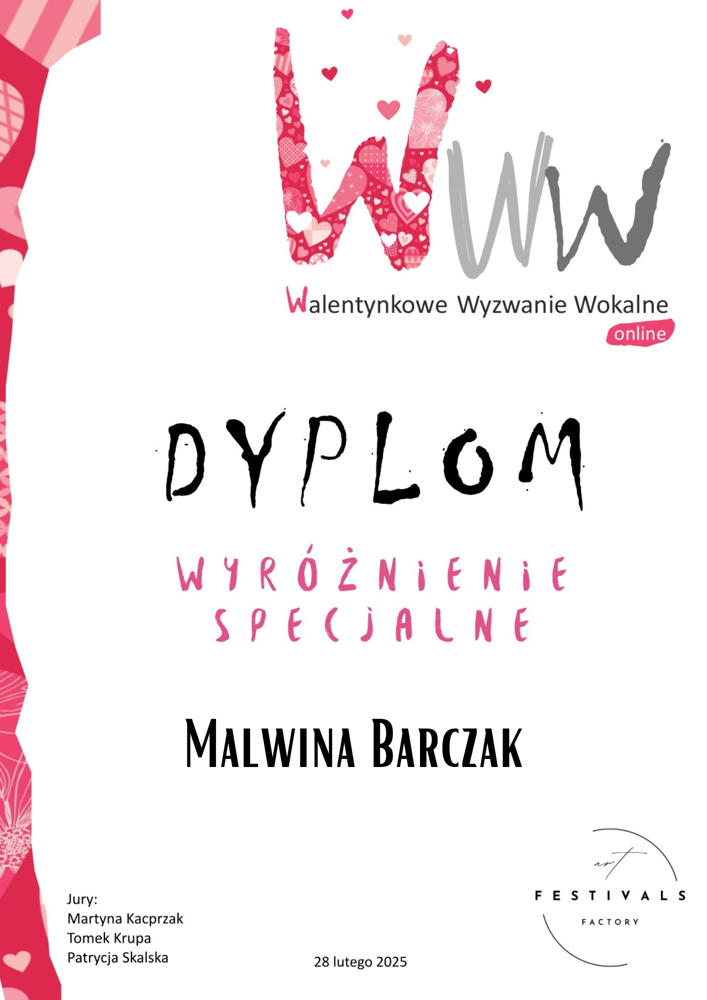 Gratulujemy Malwinie wspaniałych osiągnięć i życzymy jej dalszego rozwoju muzycznego oraz kolejnych sukcesów na scenie!