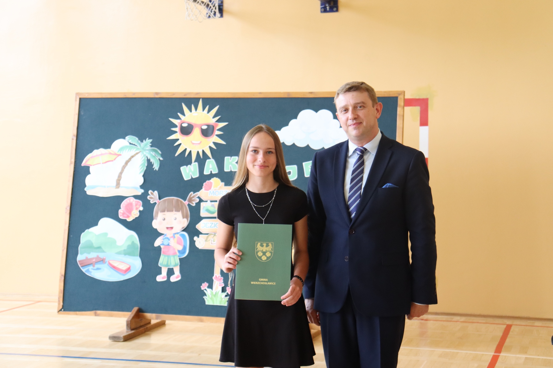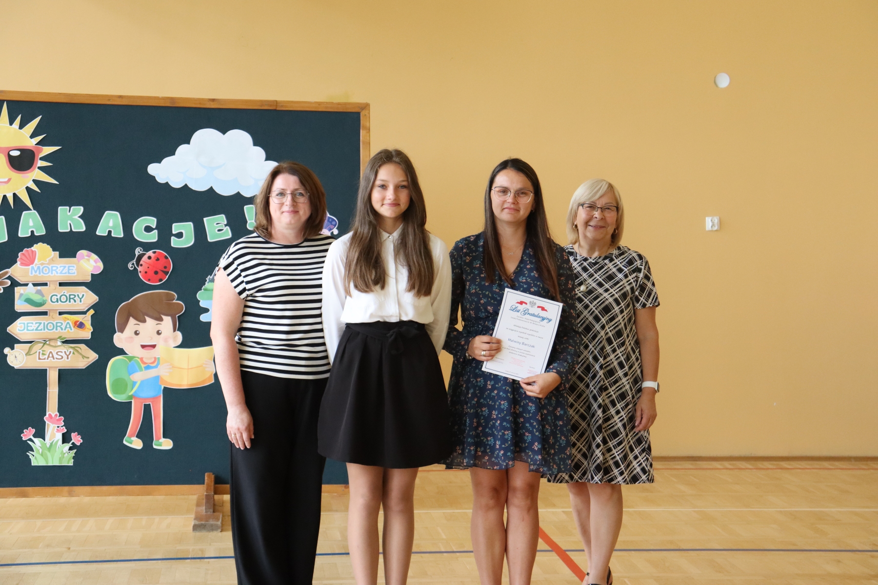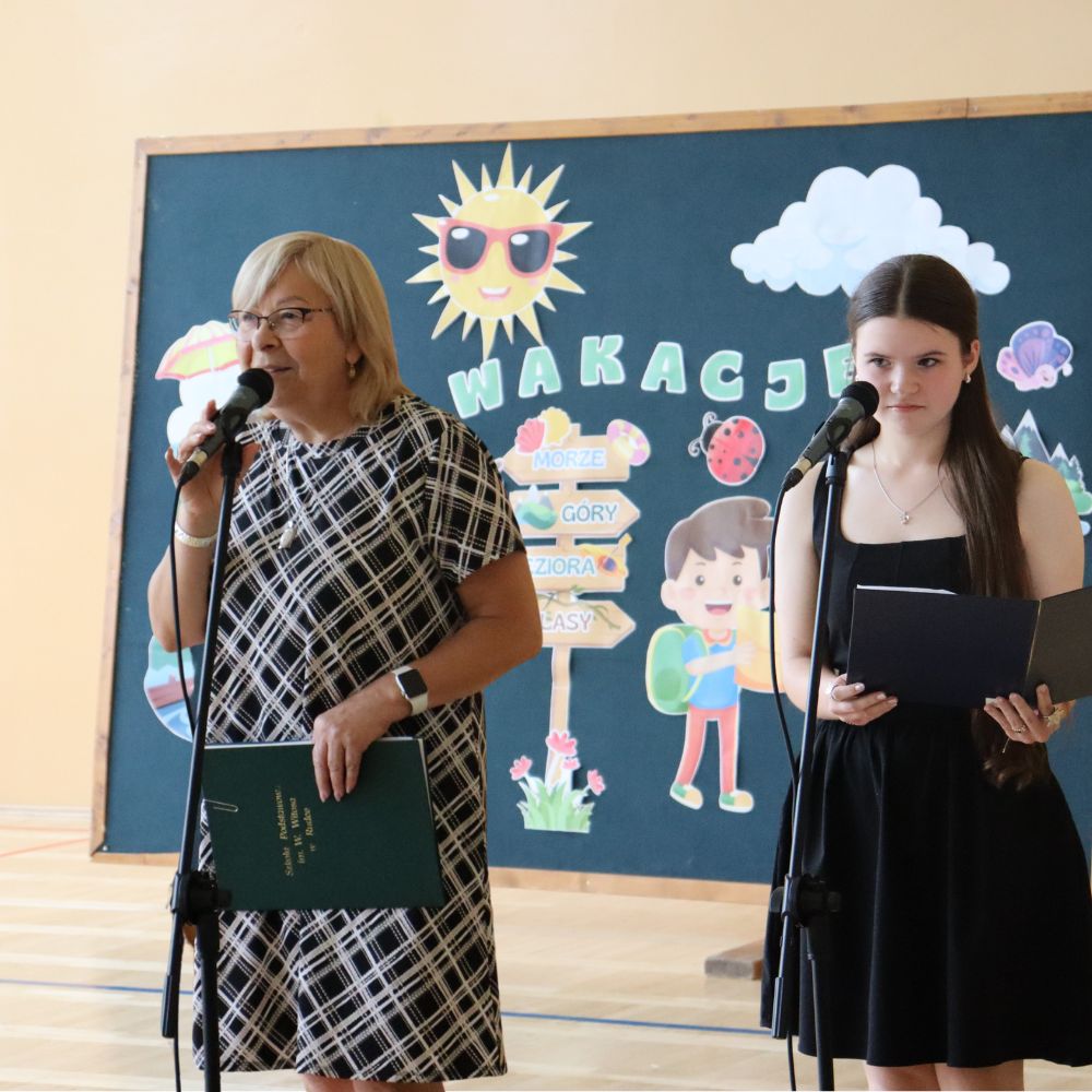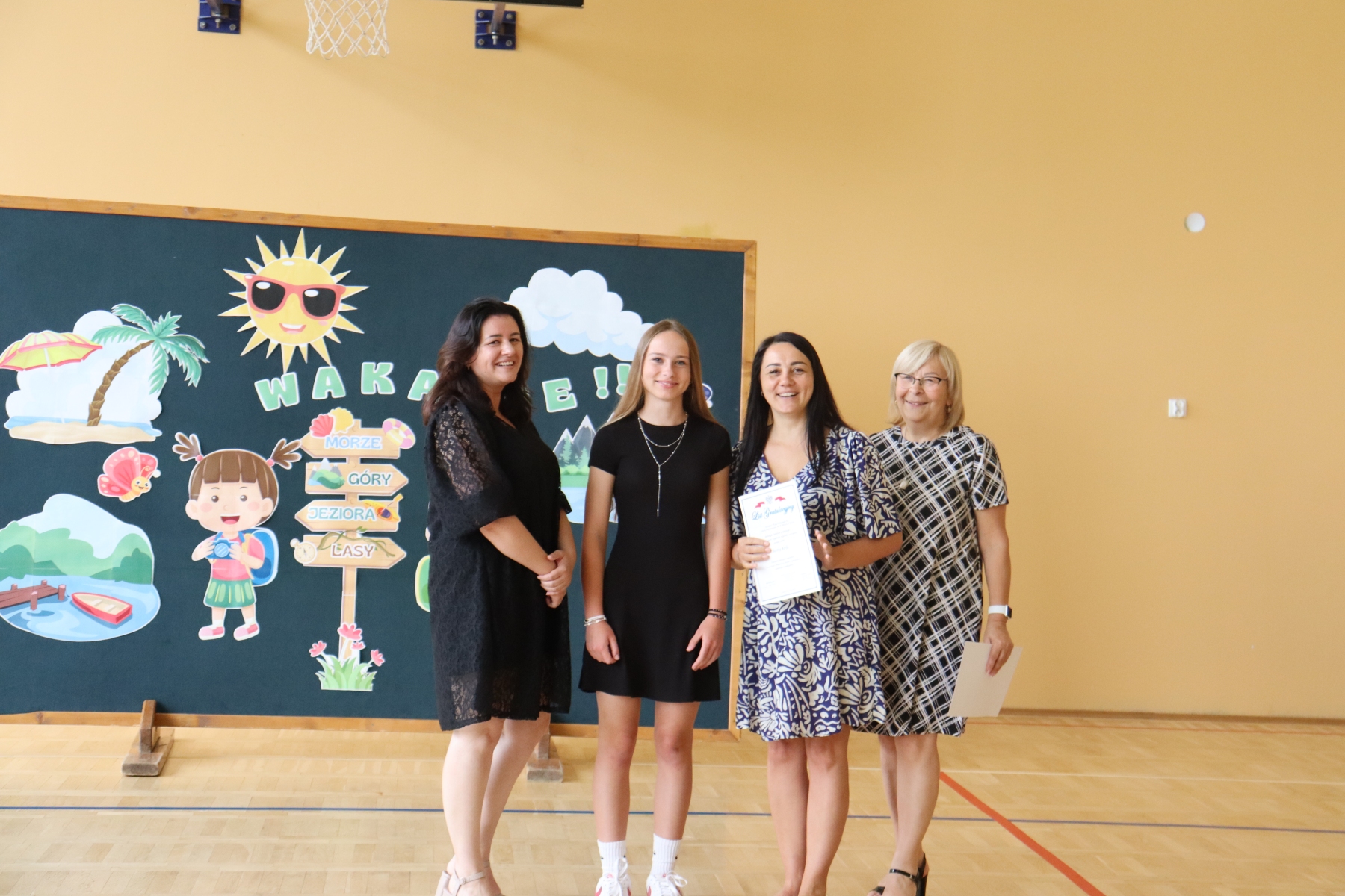 Podczas akademii wręczono nagrody uczniom za wyniki w nauce, sporcie i działalności artystycznej. Rodzice wyróżnionych uczniów otrzymali listy gratulacyjne, a Wójt Gminy przyznał specjalne nagrody najlepszym z najlepszych.