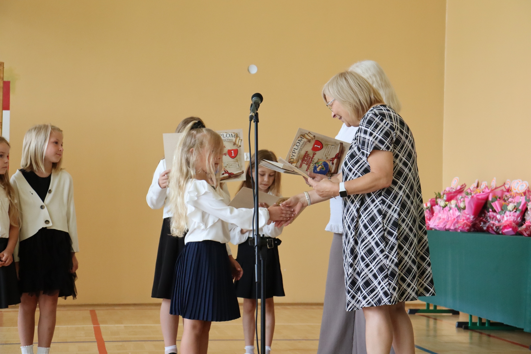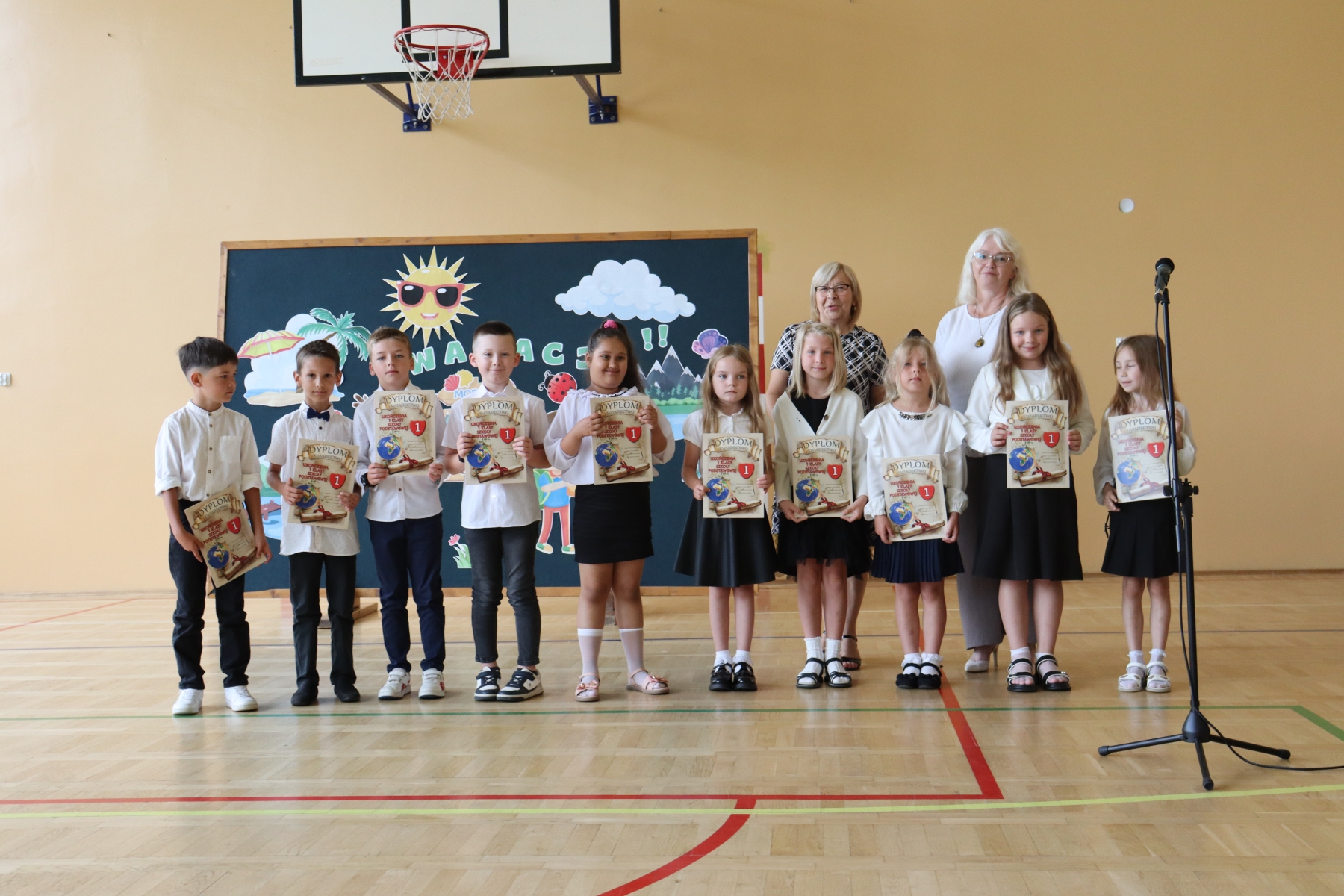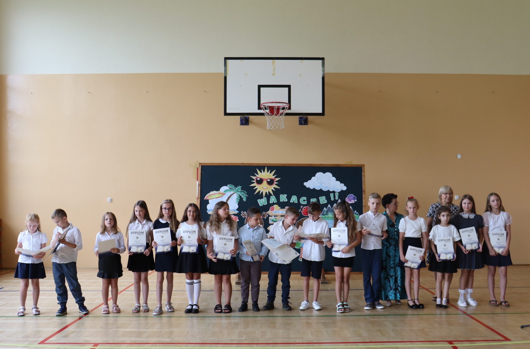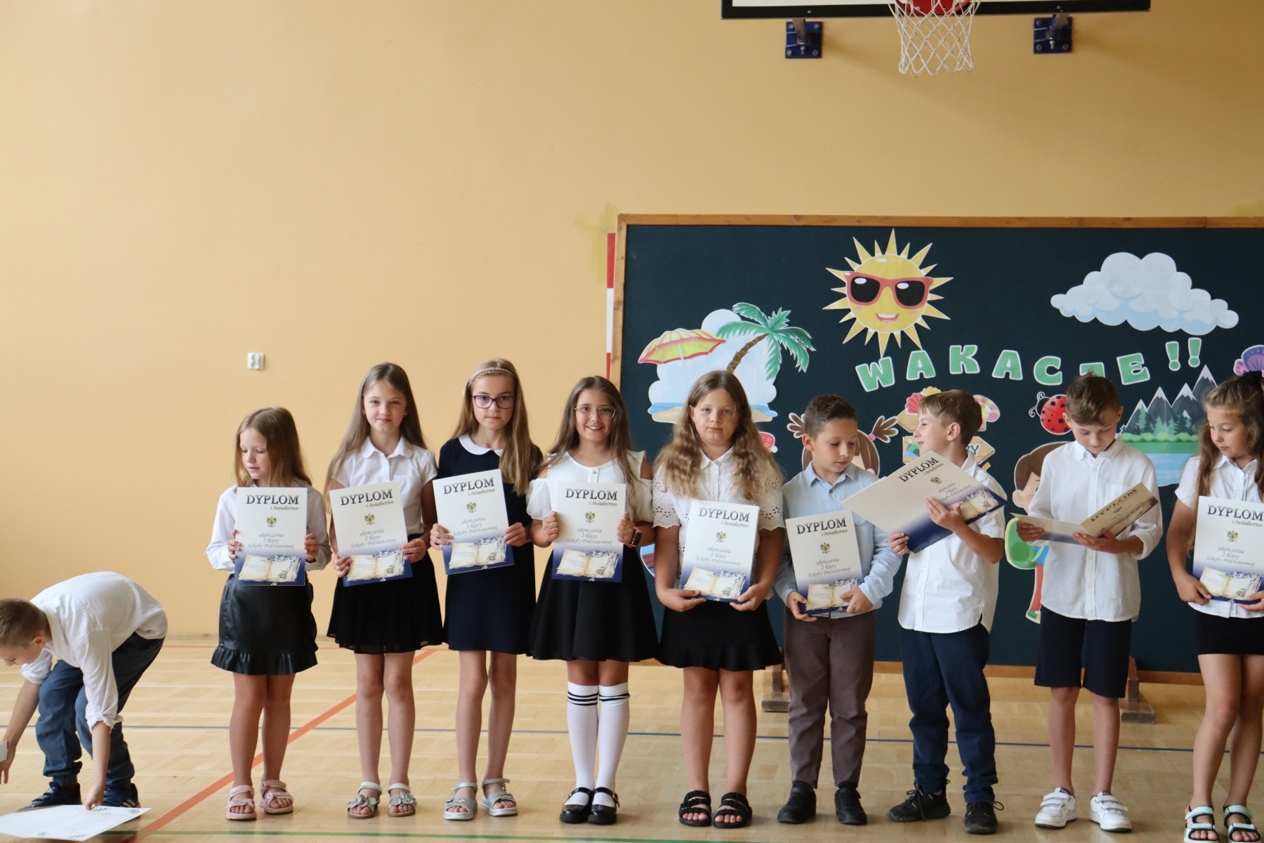 Podczas akademii wręczono nagrody uczniom za wyniki w nauce, sporcie i działalności artystycznej. Rodzice wyróżnionych uczniów otrzymali listy gratulacyjne, a Wójt Gminy przyznał specjalne nagrody najlepszym z najlepszych.